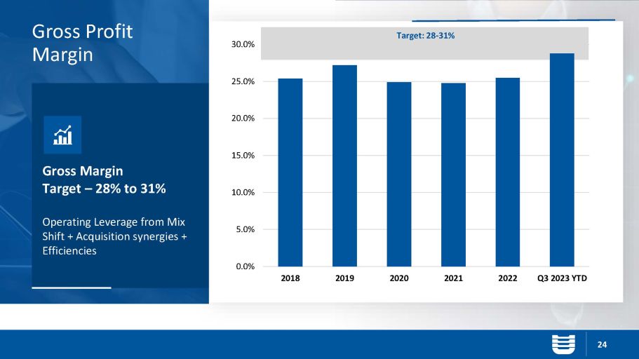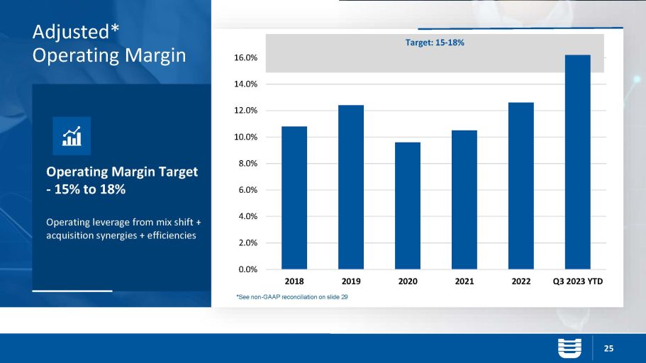 Gross Margin Target – 28% to 31% Operating Leverage from Mix Shift + Acquisition synergies + Efficiencies 24 Gross Profit Margin Target: 28 - 31% 0.0% 5.0% 10.0% 15.0% 20.0% 25.0% 30.0% 2018 2019 2020 2021 2022 Q3 2023 YTD