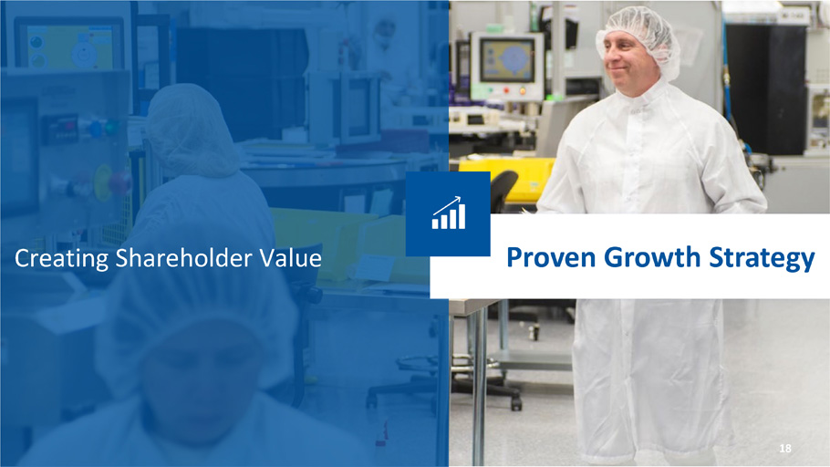 Competitive Advantage » Advanced systems (extensive quality certifications) » In addition to existing equipment, engineers will design product specific innovations in order to meet customer needs Quality & Regulatory » In - house custom equipment manufacturing capabilities Custom Equipment » Numerous patents relating to foam, packaging, tool control, radio frequency welding, automotive super - forming processes, and other products » Significant manufacturing knowhow Intellectual Property » Global footprint – competition is generally smaller companies that have limited resources and access to materials Scale » Veteran engineering team for product design and development; more than 100 members of the engineering group Engineering Resources » Exclusive access to several specialty medical grade materials » Offers broad array of materials to meet customer needs » Over 60 years in business and strong supplier relationships/partnerships Greater Access to Materials 17