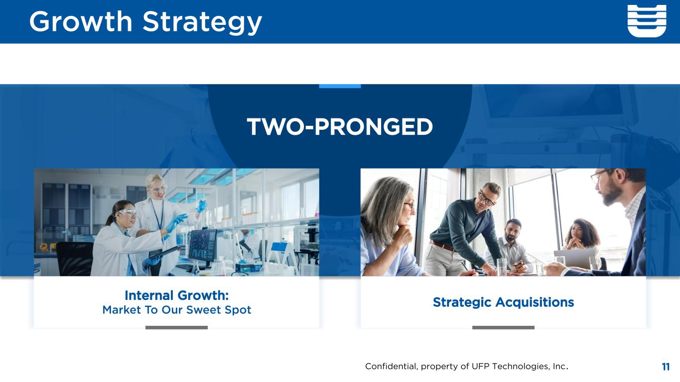 Growth Strategy 11 Internal Growth: Market To Our Sweet Spot Strategic Acquisitions TWO-PRONGED Confidential, property of UFP Technologies, Inc.