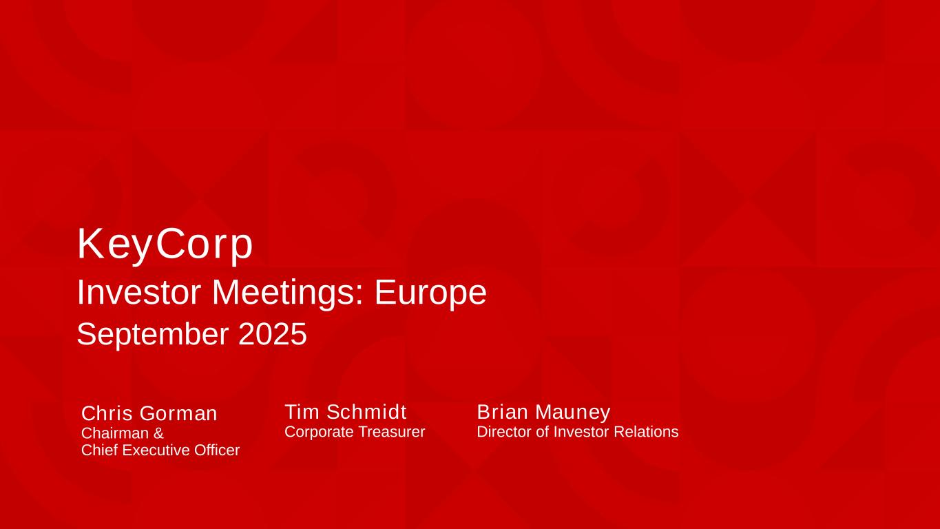 KeyCorp Investor Meetings: Europe September 2025 Brian Mauney Director of Investor Relations Chris Gorman Chairman & Chief Executive Officer Tim Schmidt Corporate Treasurer
