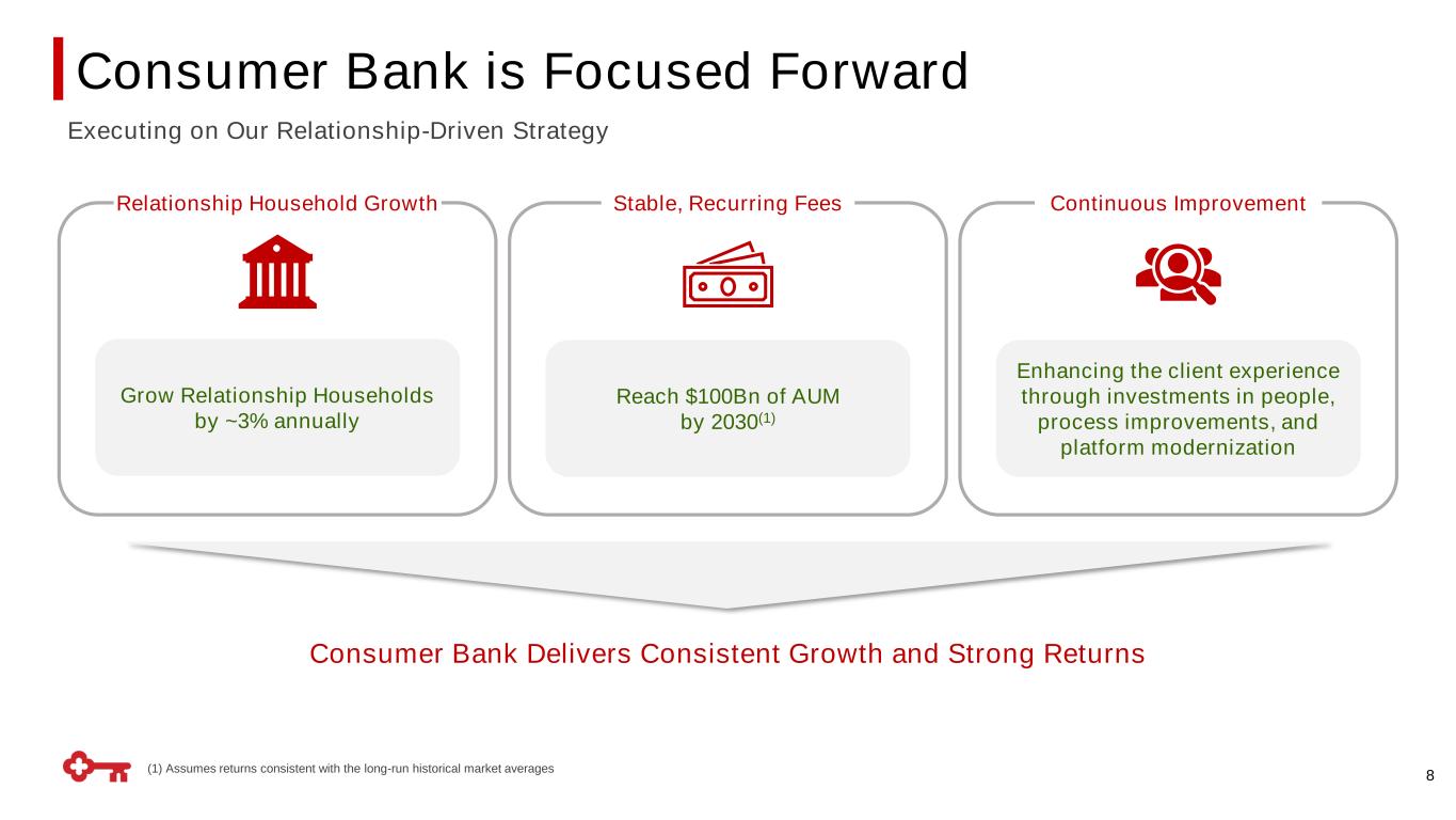 2019 3Q25 Consumer Bank: Wealth Management 7 (1) Assumes returns consistent with the long-run historical market averages Invest in Talent and Employee Development Grow and Deepen Relationships through Planning and Partnerships across Key Strengthen Digital Capabilities Build on Mass Affluent Momentum Demonstrated Progress and Momentum to Scale in Wealth Record AUM Underlying Momentum in AUM $41Bn $68Bn $100Bn 2019 3Q25 xBy 2030(1) 4Q22 3Q25 $8.2Bn $3.1Bn +160% Mass Affluent AUM Growth Wealth Banker Headcount ~40% ~550 ~400