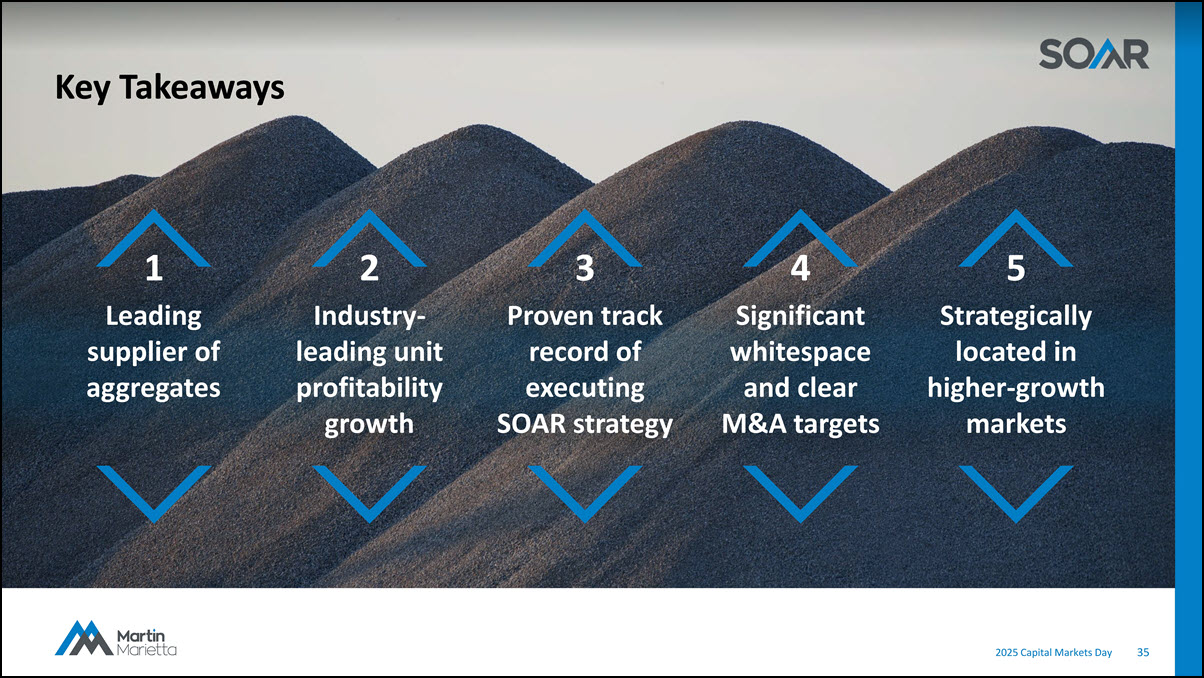 2025 Capital Markets Day  35  Key Takeaways  Industry-leading unit profitability growth  2  Proven track record of executing SOAR strategy  3  Significant whitespace and clear M&A targets  4  Leading supplier of aggregates  1  Strategically located in higher-growth markets  5