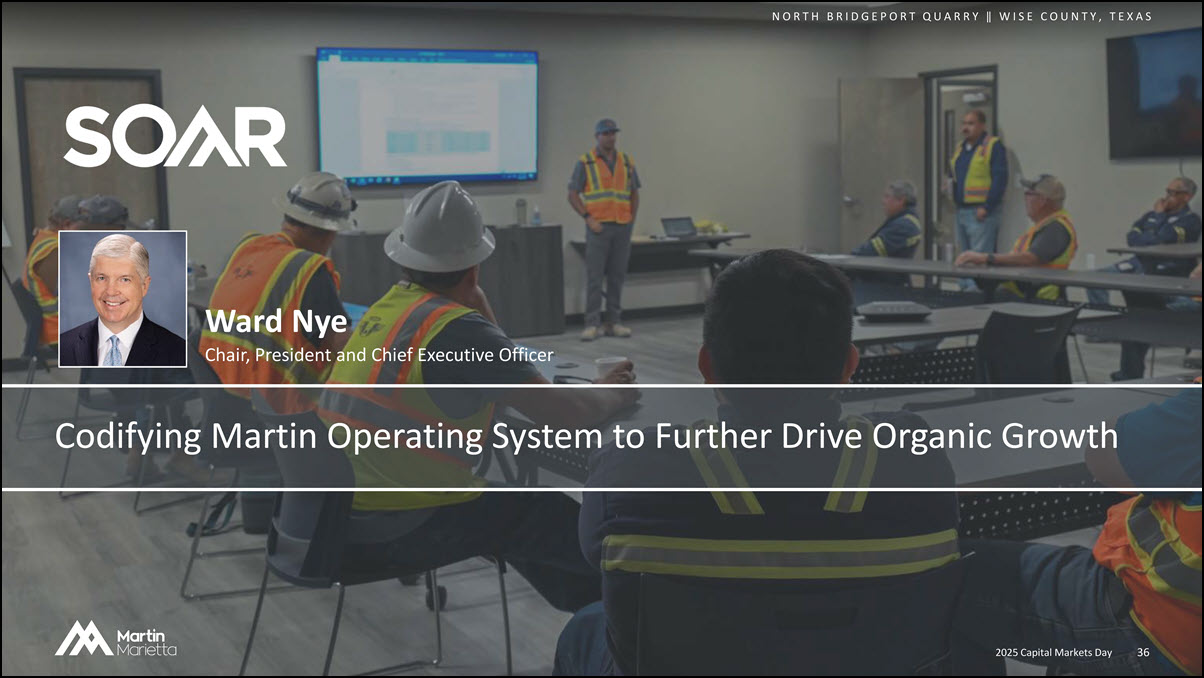 2025 Capital Markets Day  36  Codifying Martin Operating System to Further Drive Organic Growth  NORTH BRIDGEPORT QUARRY ‖ WISE COUNTY, TEXAS  Ward Nye  Chair, President and Chief Executive Officer