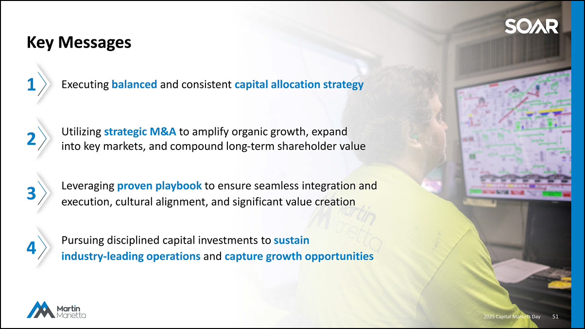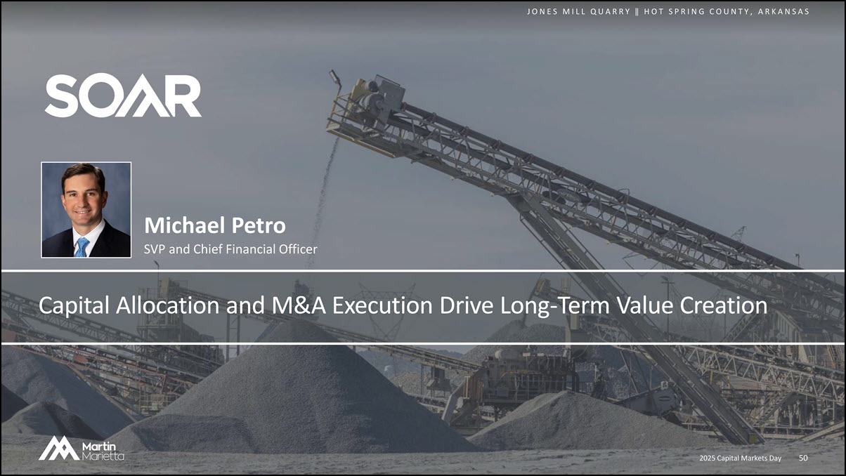 Capital Allocation and M&A Execution Drive Long-Term Value Creation  2025 Capital Markets Day  50  Michael Petro  SVP and Chief Financial Officer  JONES MILL QUARRY ‖ HOT SPRING COUNTY, ARKANSAS