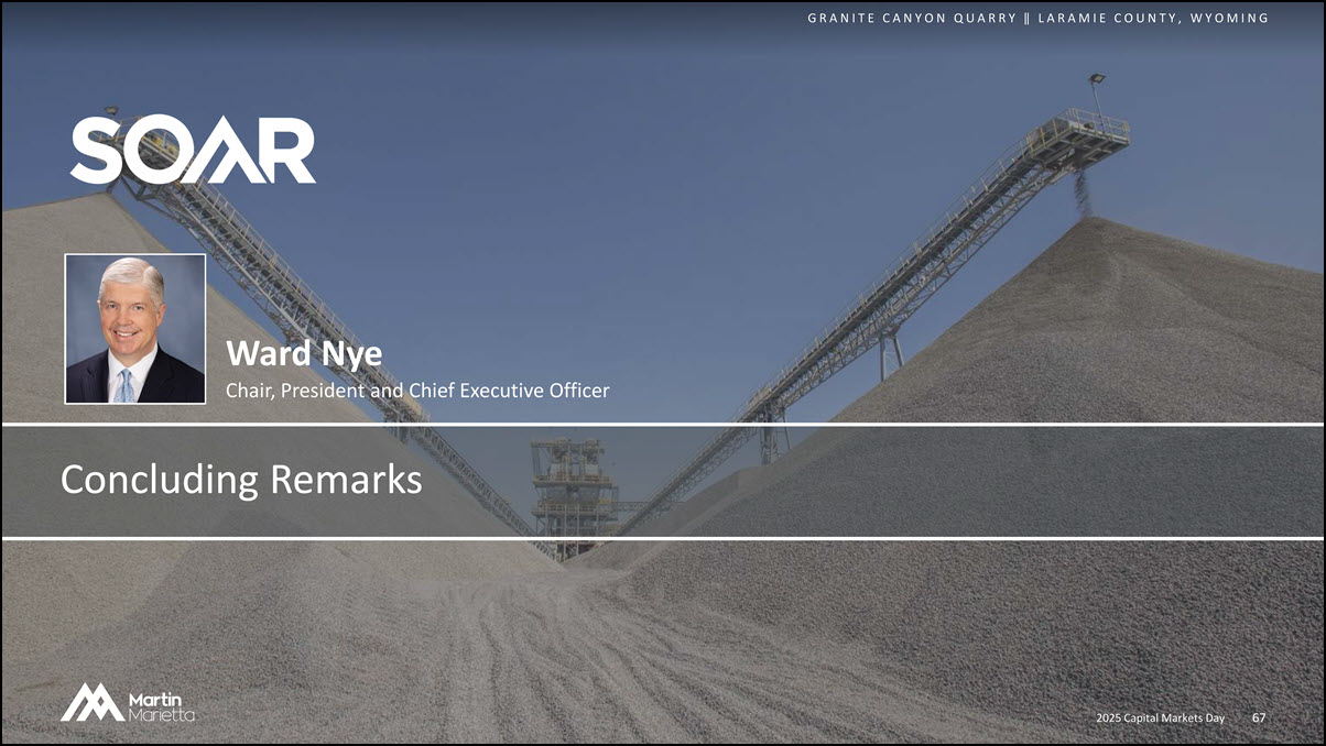Concluding Remarks  2025 Capital Markets Day  67  Ward Nye  Chair, President and Chief Executive Officer  GRANITE CANYON QUARRY ‖ LARAMIE COUNTY, WYOMING