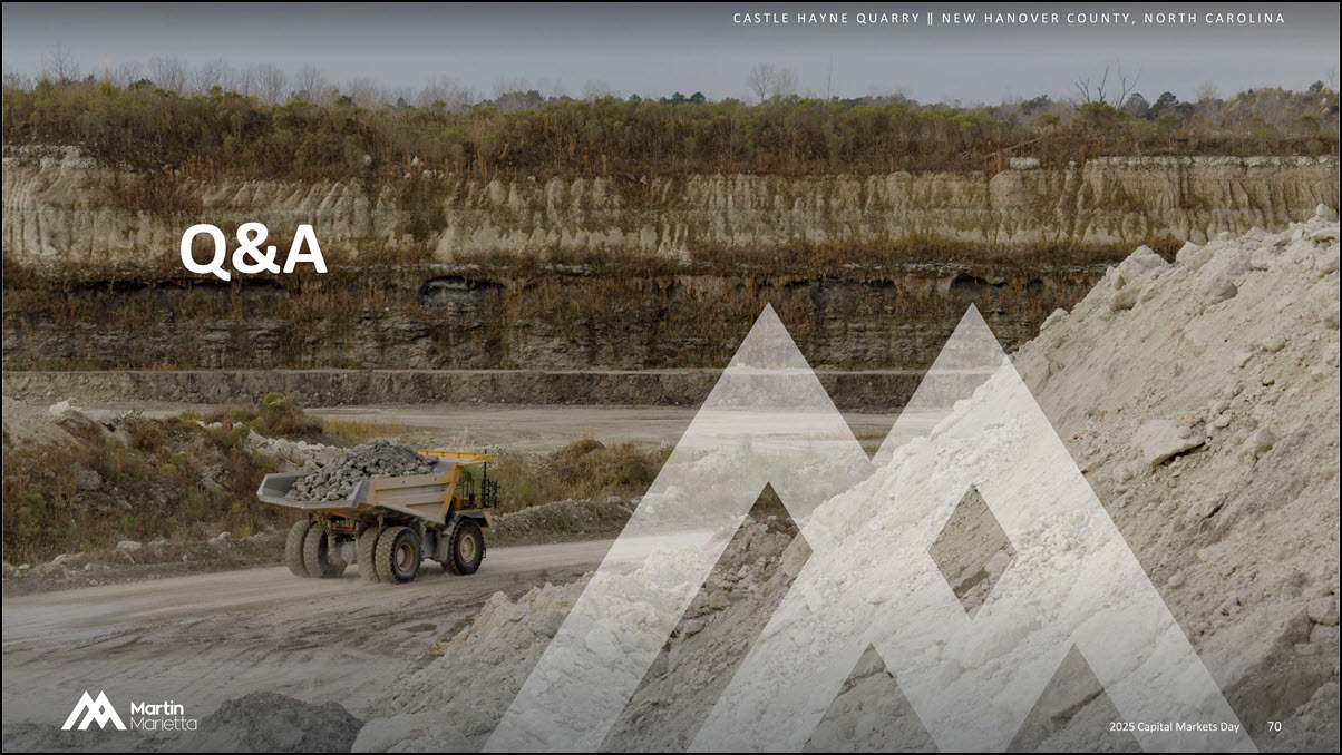 Q&A  2025 Capital Markets Day  70  CASTLE HAYNE QUARRY ‖ NEW HANOVER COUNTY, NORTH CAROLINA