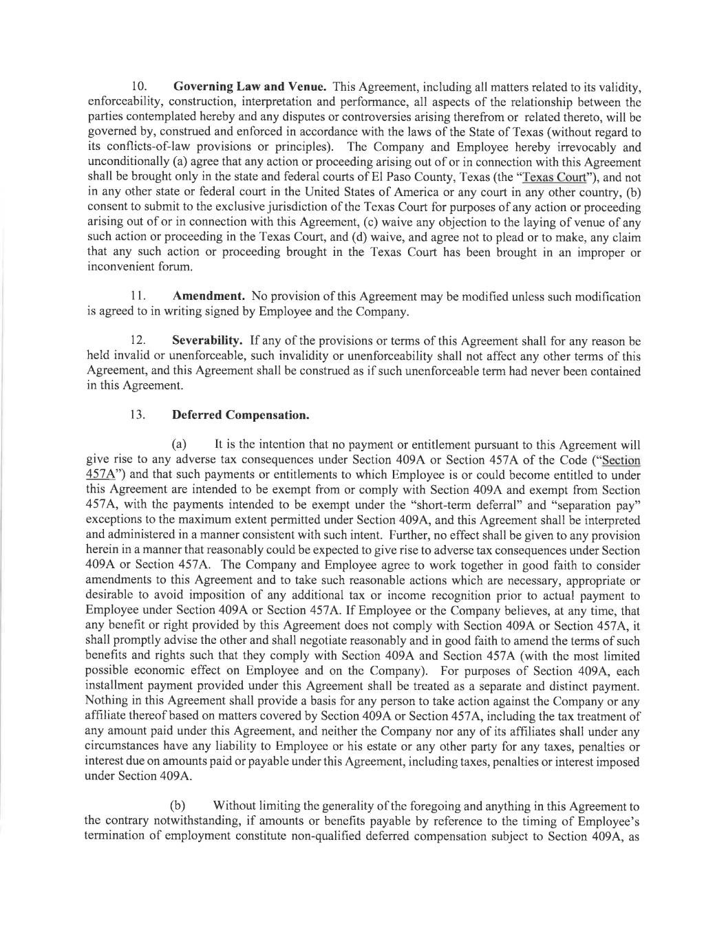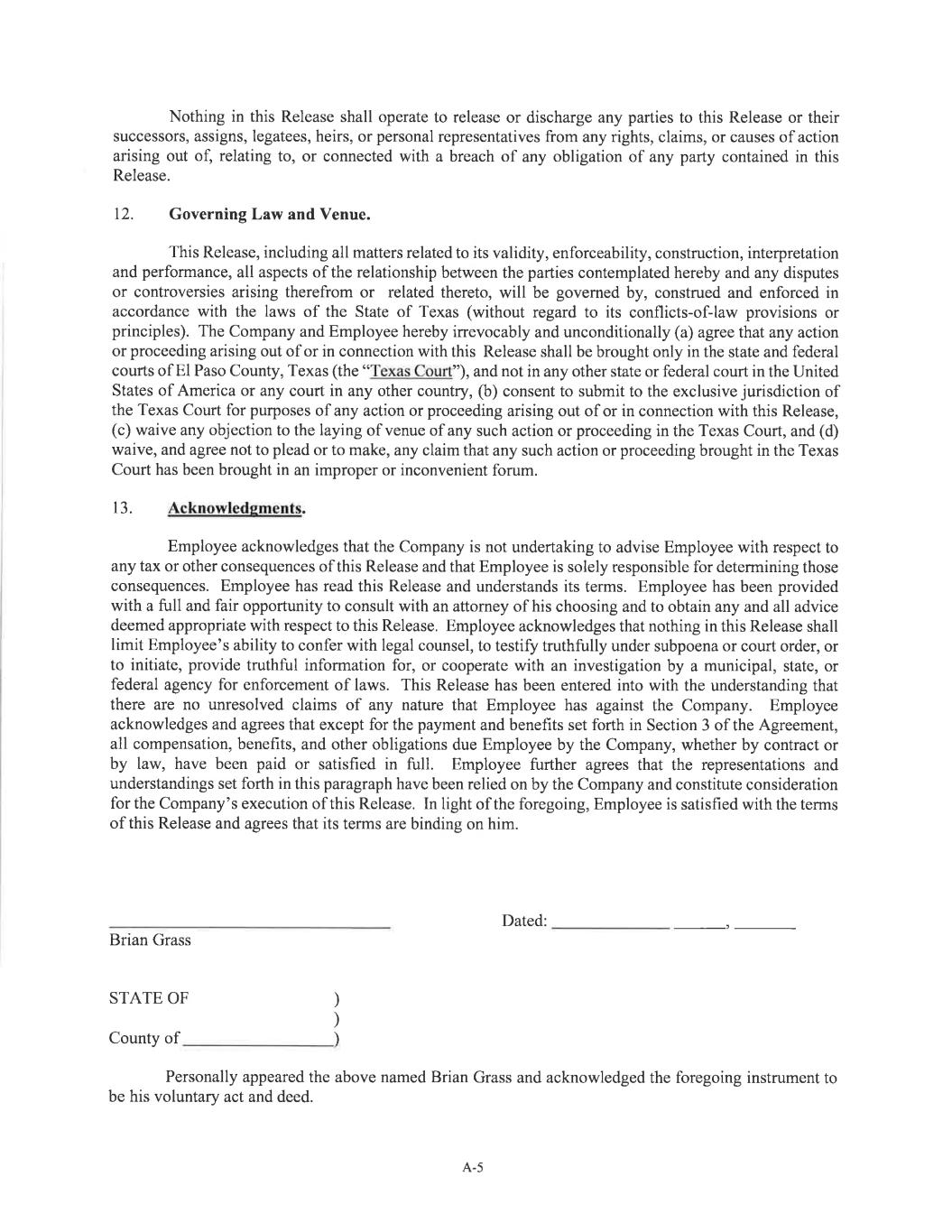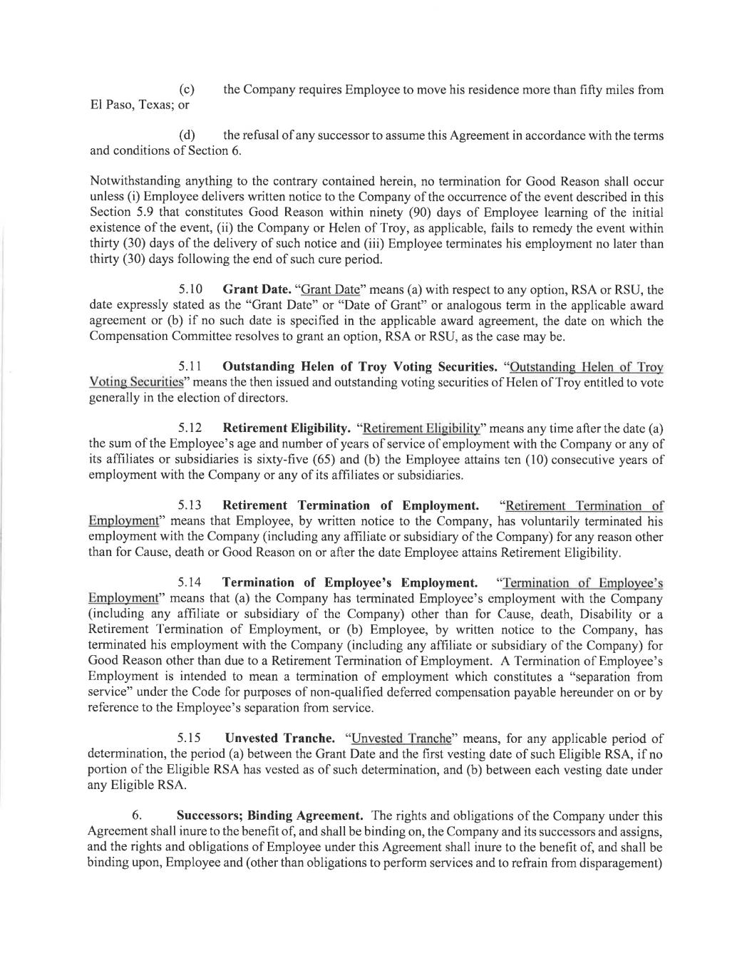 IN WITNESS WHEREOF, this Agreement has been executed on the date and year first written above. The obligations of Helen of Troy Nevada Corporation to Employee hereunder are hereby guaranteed by Helen of Troy Limited, a Bermuda company. HELEN OF TROY NEVADA CORPORATION By: /s/ Noel M. Geoffroy Name: Noel M. Geoffroy Title: Chief Operating Officer EMPLOYEE: /s/ Brian Grass Brian Grass HELEN OF TROY LIMITED, a Bermuda company By: /s/ Tessa Judge Name: Tessa Judge Title: CLO