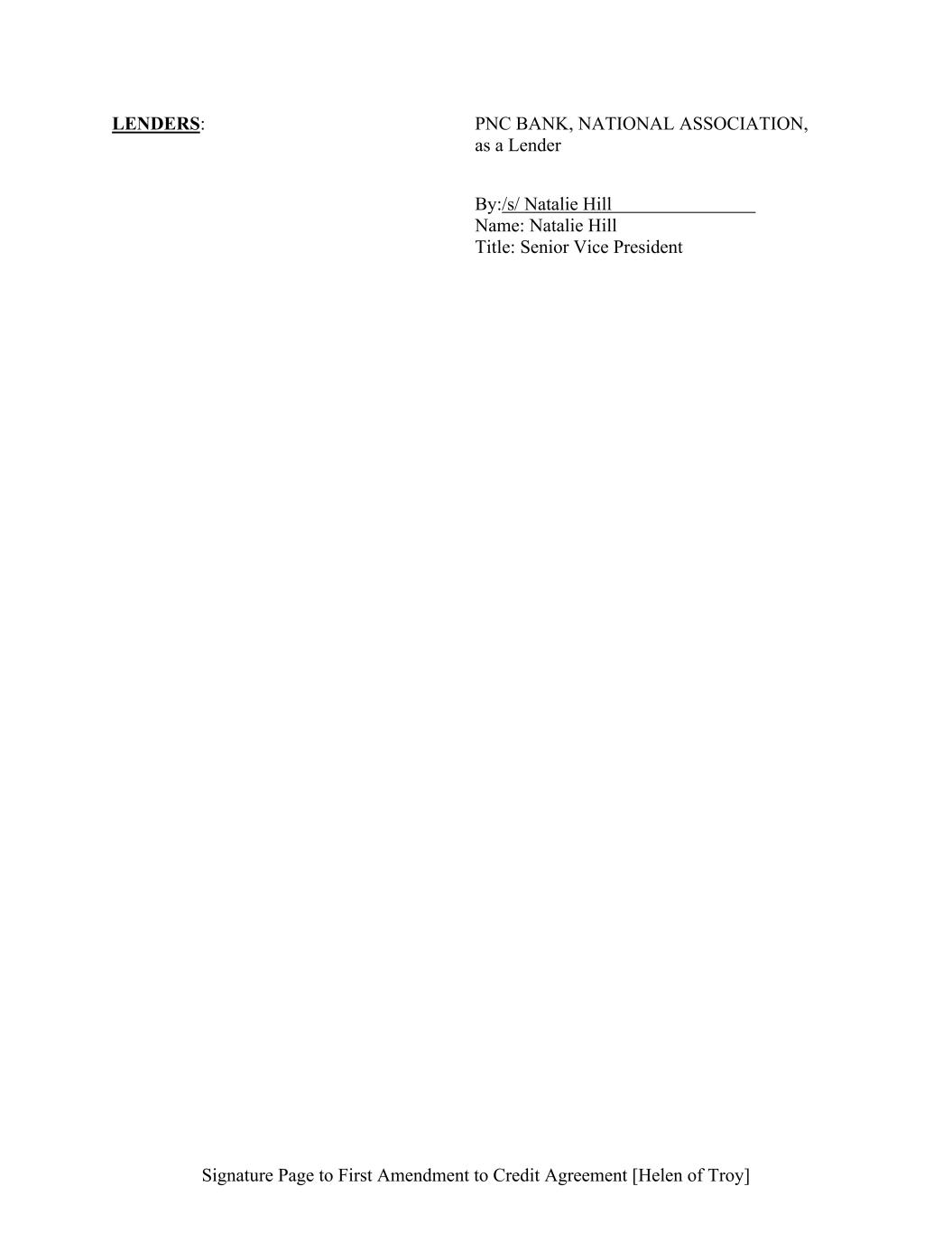 Signature Page to First Amendment to Credit Agreement [Helen of Troy] LENDERS: PNC BANK, NATIONAL ASSOCIATION, as a Lender By:/s/ Natalie Hill Name: Natalie Hill Title: Senior Vice President