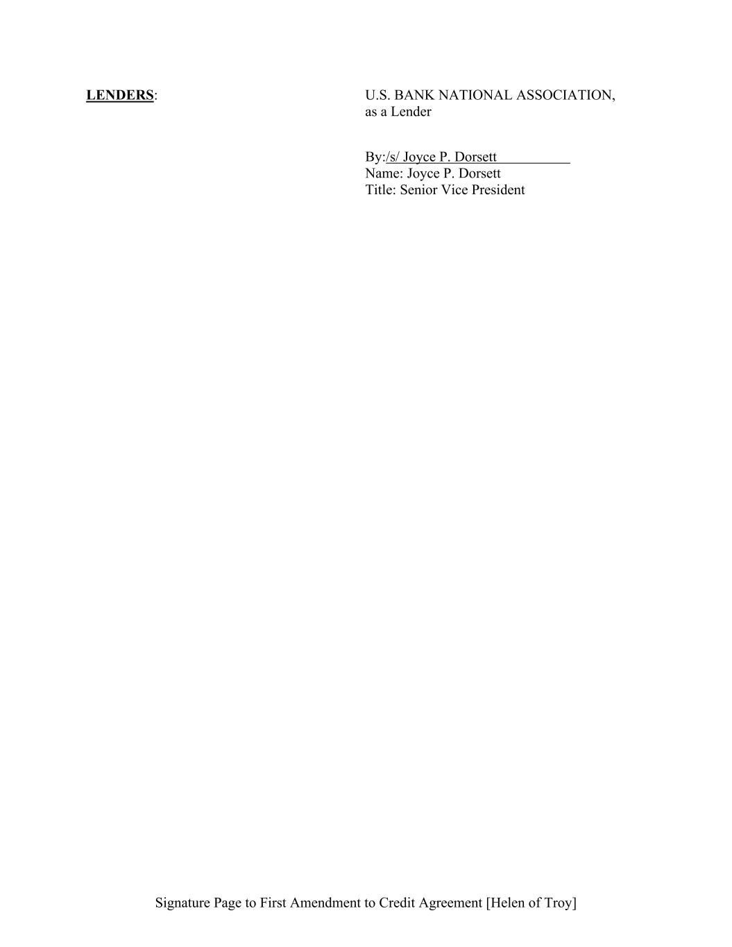 Signature Page to First Amendment to Credit Agreement [Helen of Troy] LENDERS: U.S. BANK NATIONAL ASSOCIATION, as a Lender By:/s/ Joyce P. Dorsett Name: Joyce P. Dorsett Title: Senior Vice President