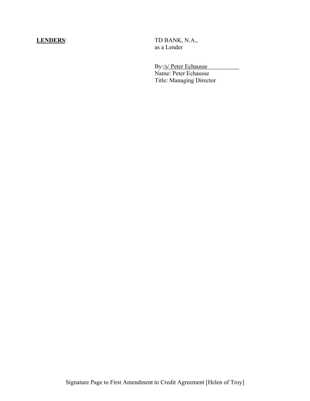 Signature Page to First Amendment to Credit Agreement [Helen of Troy] LENDERS: TD BANK, N.A., as a Lender By:/s/ Peter Echausse Name: Peter Echausse Title: Managing Director