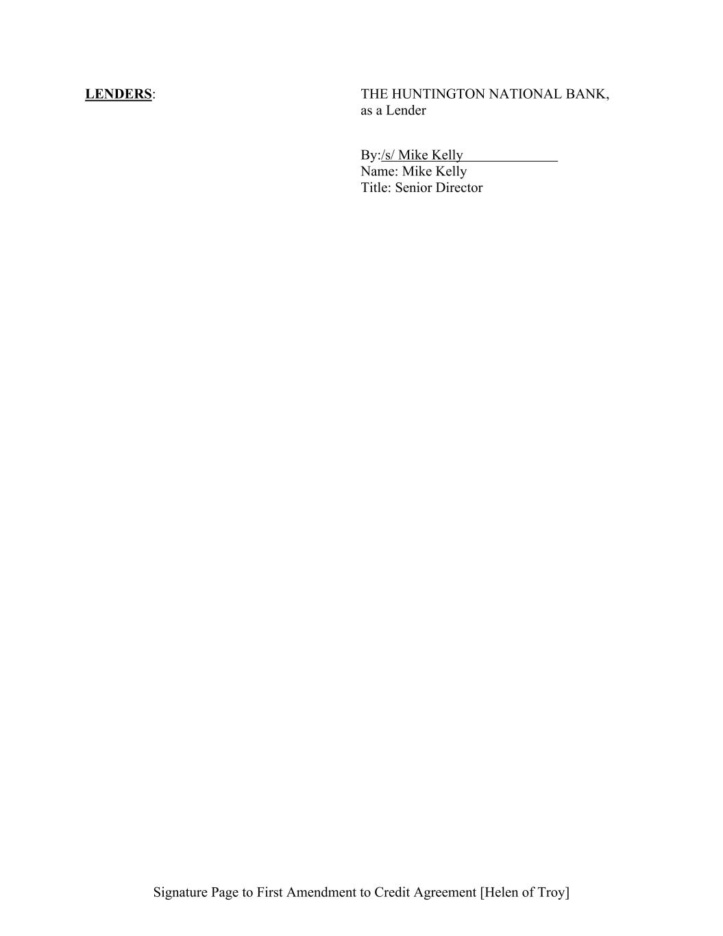 Signature Page to First Amendment to Credit Agreement [Helen of Troy] LENDERS: THE HUNTINGTON NATIONAL BANK, as a Lender By:/s/ Mike Kelly Name: Mike Kelly Title: Senior Director