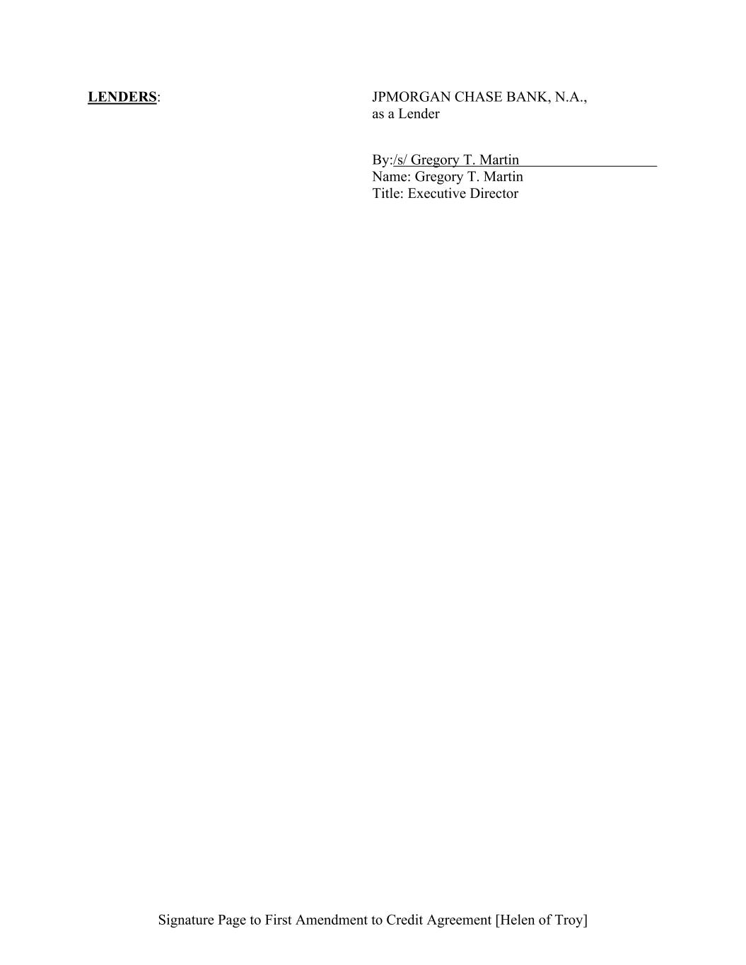 Signature Page to First Amendment to Credit Agreement [Helen of Troy] LENDERS: JPMORGAN CHASE BANK, N.A., as a Lender By:/s/ Gregory T. Martin Name: Gregory T. Martin Title: Executive Director