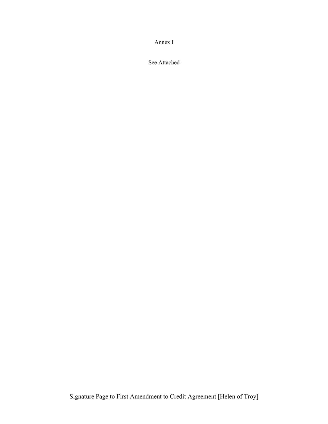 Signature Page to First Amendment to Credit Agreement [Helen of Troy] Annex I See Attached