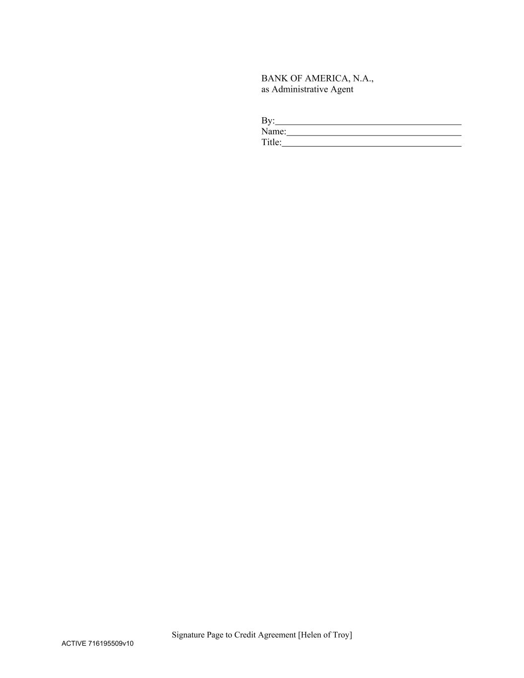 Signature Page to Credit Agreement [Helen of Troy] ACTIVE 716195509v10 BANK OF AMERICA, N.A., as Administrative Agent By: Name: Title: