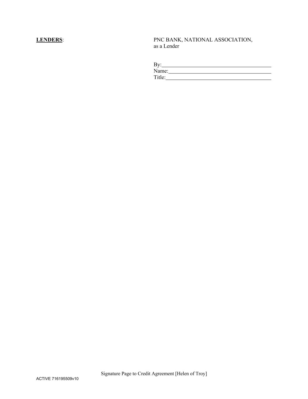 Signature Page to Credit Agreement [Helen of Troy] ACTIVE 716195509v10 LENDERS: PNC BANK, NATIONAL ASSOCIATION, as a Lender By: Name: Title: