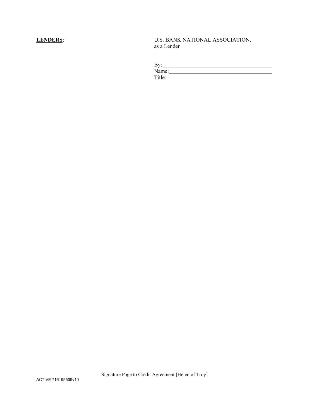 Signature Page to Credit Agreement [Helen of Troy] ACTIVE 716195509v10 LENDERS: U.S. BANK NATIONAL ASSOCIATION, as a Lender By: Name: Title: