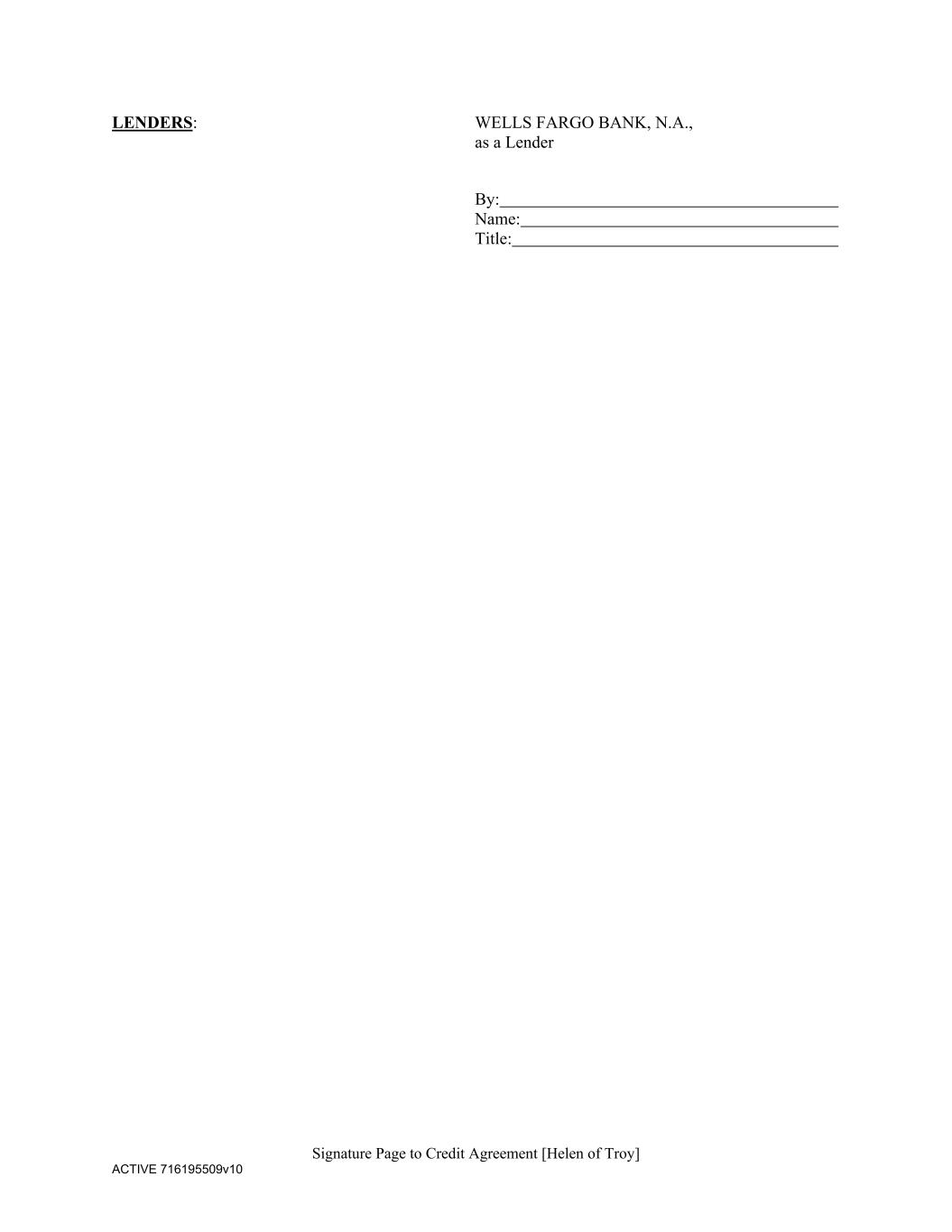 Signature Page to Credit Agreement [Helen of Troy] ACTIVE 716195509v10 LENDERS: WELLS FARGO BANK, N.A., as a Lender By: Name: Title: