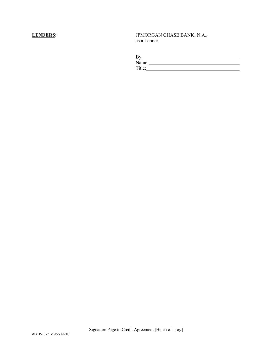 Signature Page to Credit Agreement [Helen of Troy] ACTIVE 716195509v10 LENDERS: JPMORGAN CHASE BANK, N.A., as a Lender By: Name: Title: