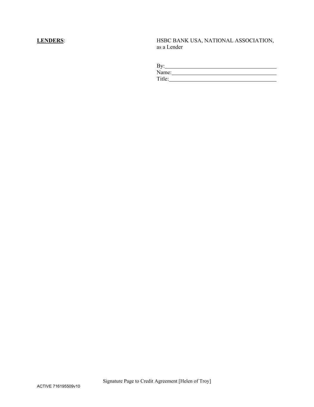 Signature Page to Credit Agreement [Helen of Troy] ACTIVE 716195509v10 LENDERS: HSBC BANK USA, NATIONAL ASSOCIATION, as a Lender By: Name: Title: