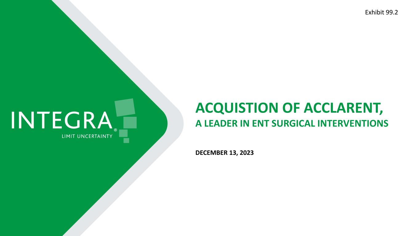 ACQUISTION OF ACCLARENT, A LEADER IN ENT SURGICAL INTERVENTIONS DECEMBER 13, 2023 Exhibit 99.2