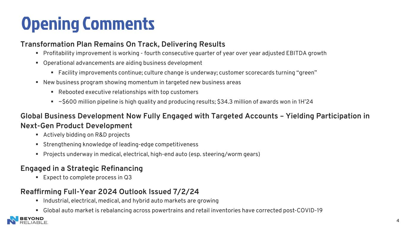 NN, Inc. Second Quarter 2024 Earnings Call August 8, 2024