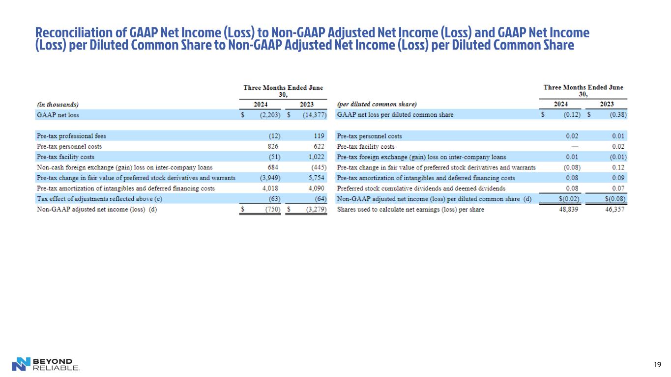 19 Reconciliation of GAAP Net Income (Loss) to Non-GAAP Adjusted Net Income (Loss) and GAAP Net Income (Loss) per Diluted Common Share to Non-GAAP Adjusted Net Income (Loss) per Diluted Common Share