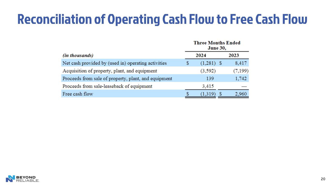 20 Reconciliation of Operating Cash Flow to Free Cash Flow