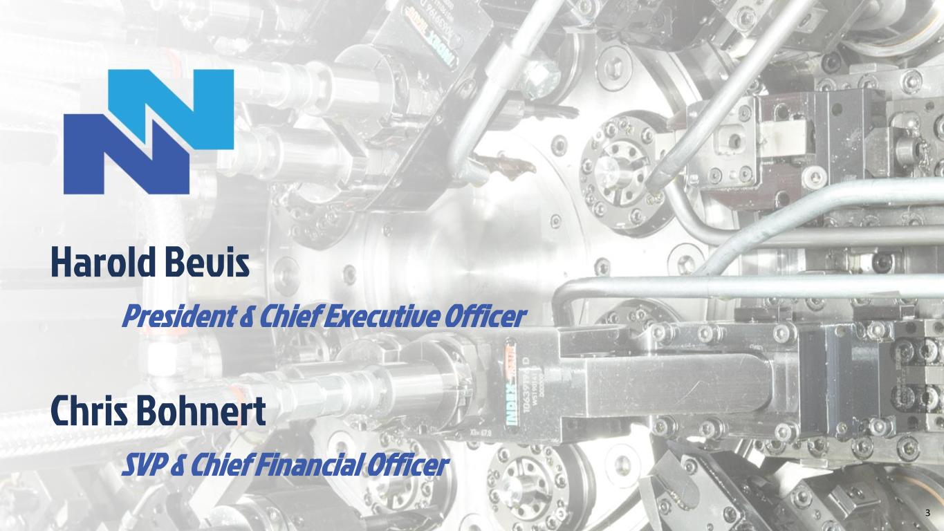 Except for specific historical information, many of the matters discussed in this presentation may express or imply projections of revenues or expenditures, statements of plans and objectives or future operations or statements of future economic performance. These statements may discuss goals, intentions and expectations as to future trends, plans, events, results of operations or financial condition, or state other information relating to NN, Inc. (the “Company”) based on current beliefs of management as well as assumptions made by, and information currently available to, management. Forward- looking statements generally will be accompanied by words such as “anticipate,” “believe,” “could,” “estimate,” “expect,” “forecast,” “guidance,” “intend,” “may,” “possible,” “potential,” “predict,” “project” or other similar words, phrases or expressions. Forward-looking statements involve a number of risks and uncertainties that are outside of management’s control and that may cause actual results to be materially different from such forward-looking statements. Such factors include, among others, general economic conditions and economic conditions in the industrial sector; the impacts of pandemics, epidemics, disease outbreaks and other public health crises on our financial condition, business operations and liquidity; competitive influences; risks that current customers will commence or increase captive production; risks of capacity underutilization; quality issues; material changes in the costs and availability of raw materials; economic, social, political and geopolitical instability, military conflict, currency fluctuation, and other risks of doing business outside of the United States; inflationary pressures and changes in the cost or availability of materials, supply chain shortages and disruptions, the availability of labor and labor disruptions along the supply chain; our dependence on certain major customers, some of whom are not parties to long-term agreements (and/or are terminable on short notice); the impact of acquisitions and divestitures, as well as expansion of end markets and product offerings; our ability to hire or retain key personnel; the level of our indebtedness; the restrictions contained in our debt agreements; our ability to obtain financing at favorable rates, if at all, and to refinance existing debt as it matures; our ability to secure, maintain or enforce patents or other appropriate protections for our intellectual property; new laws and governmental regulations; the impact of climate change on our operations; and cyber liability or potential liability for breaches of our or our service providers’ information technology systems or business operations disruptions. The foregoing factors should not be construed as exhaustive and should be read in conjunction with the sections entitled “Risk Factors” and “Management’s Discussion and Analysis of Financial Condition and Results of Operations” included in the Company’s filings made with the Securities and Exchange Commission. Any forward-looking statement speaks only as of the date of this press release, and the Company undertakes no obligation to publicly update or review any forward- looking statement, whether as a result of new information, future developments or otherwise, except as required by law. New risks and uncertainties may emerge from time to time, and it is not possible for the Company to predict their occurrence or how they will affect the Company. The Company qualifies all forward-looking statements by these cautionary statements. With respect to any non-GAAP financial measures included in the following presentation, the accompanying information required by SEC Regulation G can be found in the back of this document or in the “Investors” section of the Company’s web site, www.nninc.com, under the heading “News & Events” and subheading “Presentations. Forward Looking Statement & Disclosures 2