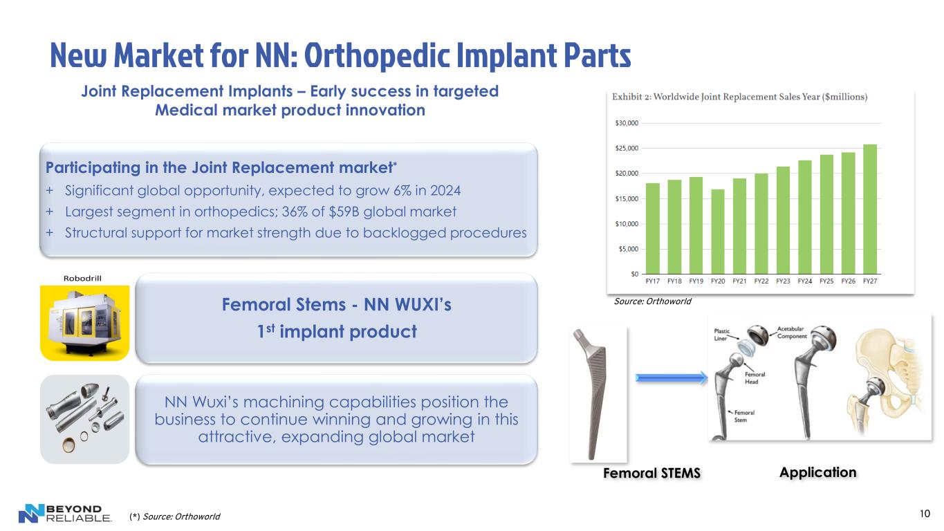12 Trends We See: China Making Low-Cost Cars for Itself and Certain Export Markets China's largest markets – China, Russia, Latin America, Middle East and parts of Europe. Largely blocked from US, Canada, India, Turkey, and Brazil. NN has been in China in over 20 years for both auto and medical markets for machined and stamped parts. Sell a great mix of products in that market. NN is benefitting from the emergence of China as an auto exporter. For instance, NN's Wuxi plant sales are growing strongly with additional business wins for 2025, 2026 and 2027.