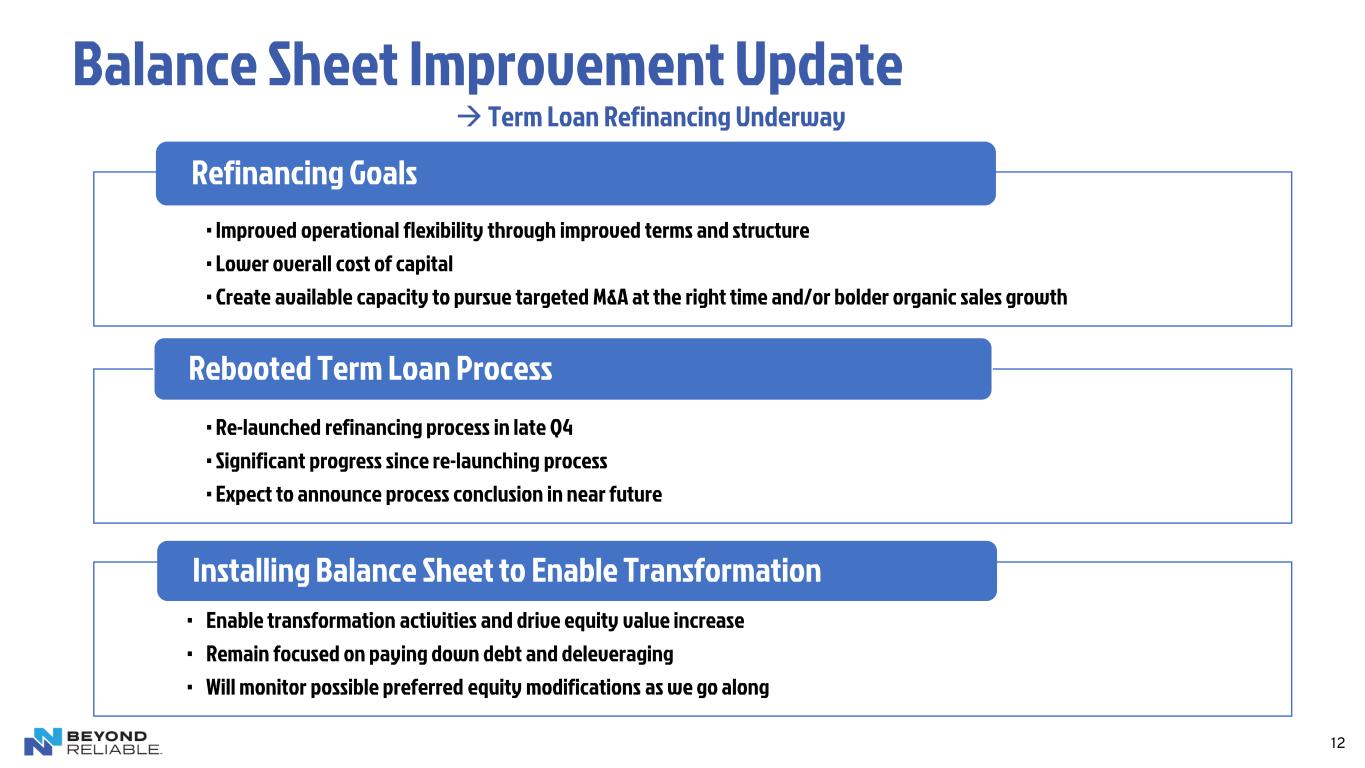 • Improved operational flexibility through improved terms and structure • Lower overall cost of capital • Create available capacity to pursue targeted M&A at the right time and/or bolder organic sales growth Refinancing Goals • Re-launched refinancing process in late Q4 • Significant progress since re-launching process • Expect to announce process conclusion in near future Rebooted Term Loan Process • Enable transformation activities and drive equity value increase • Remain focused on paying down debt and deleveraging • Will monitor possible preferred equity modifications as we go along Installing Balance Sheet to Enable Transformation Balance Sheet Improvement Update 12 → Term Loan Refinancing Underway