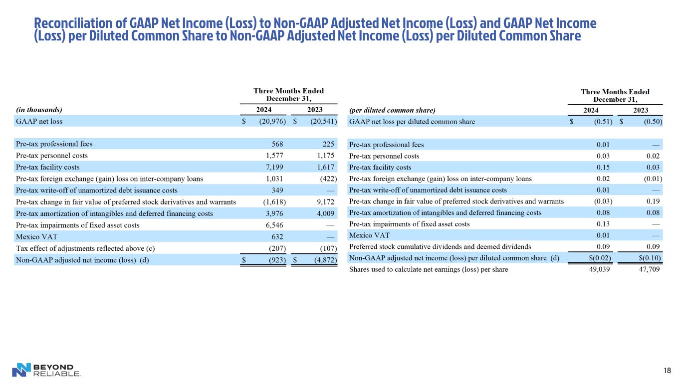 18 Reconciliation of GAAP Net Income (Loss) to Non-GAAP Adjusted Net Income (Loss) and GAAP Net Income (Loss) per Diluted Common Share to Non-GAAP Adjusted Net Income (Loss) per Diluted Common Share