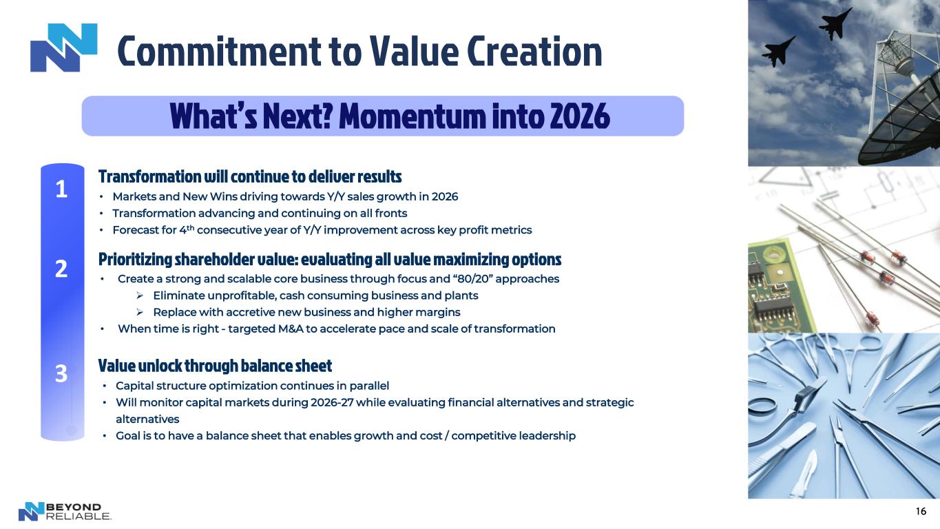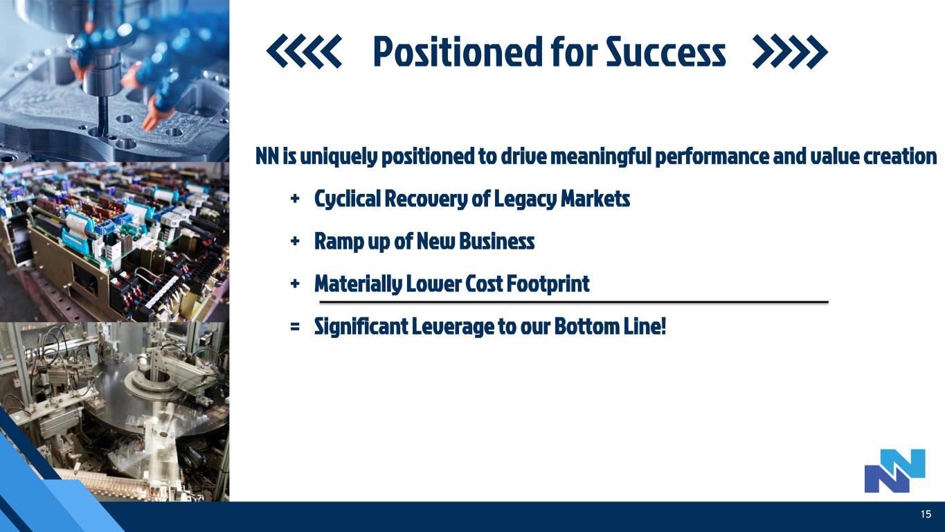 Positioned for Success 15 NN is uniquely positioned to drive meaningful performance and value creation + Cyclical Recovery of Legacy Markets + Ramp up of New Business + Materially Lower Cost Footprint = Significant Leverage to our Bottom Line!