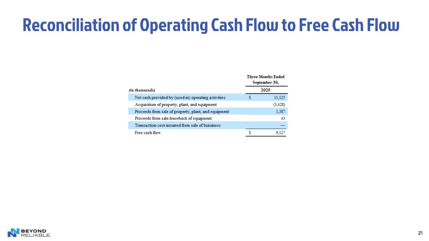 21 Reconciliation of Operating Cash Flow to Free Cash Flow