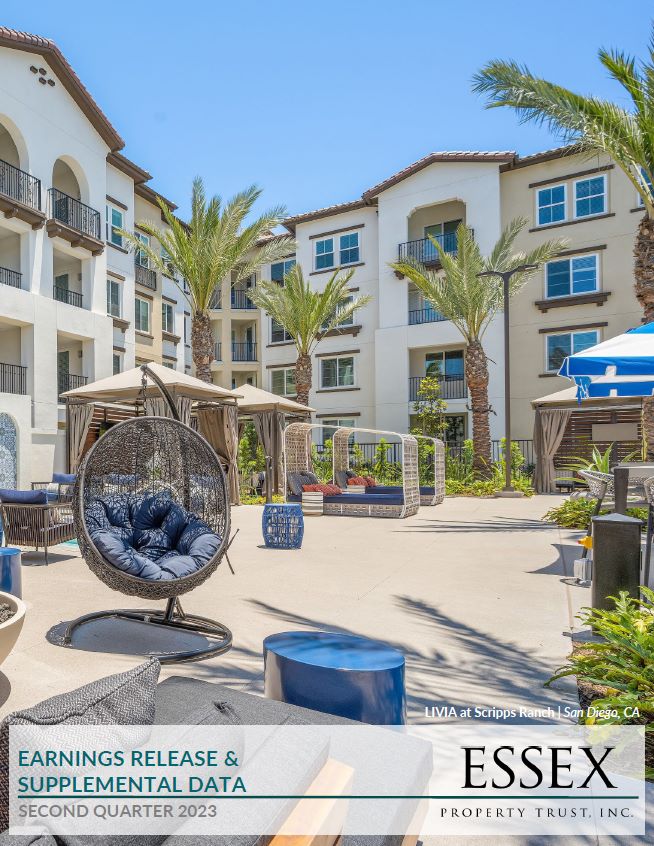 San Mateo, California—July 27, 2023—Essex Property Trust, Inc. (NYSE: ESS) (the “Company”) announced today its second quarter 2023 earnings results and related business activities.