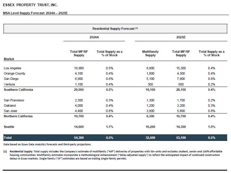 San Mateo, California—April 29, 2025—Essex Property Trust, Inc. (NYSE: ESS) (the “Company”) announced today its first quarter 2025 earnings results and related business activities.