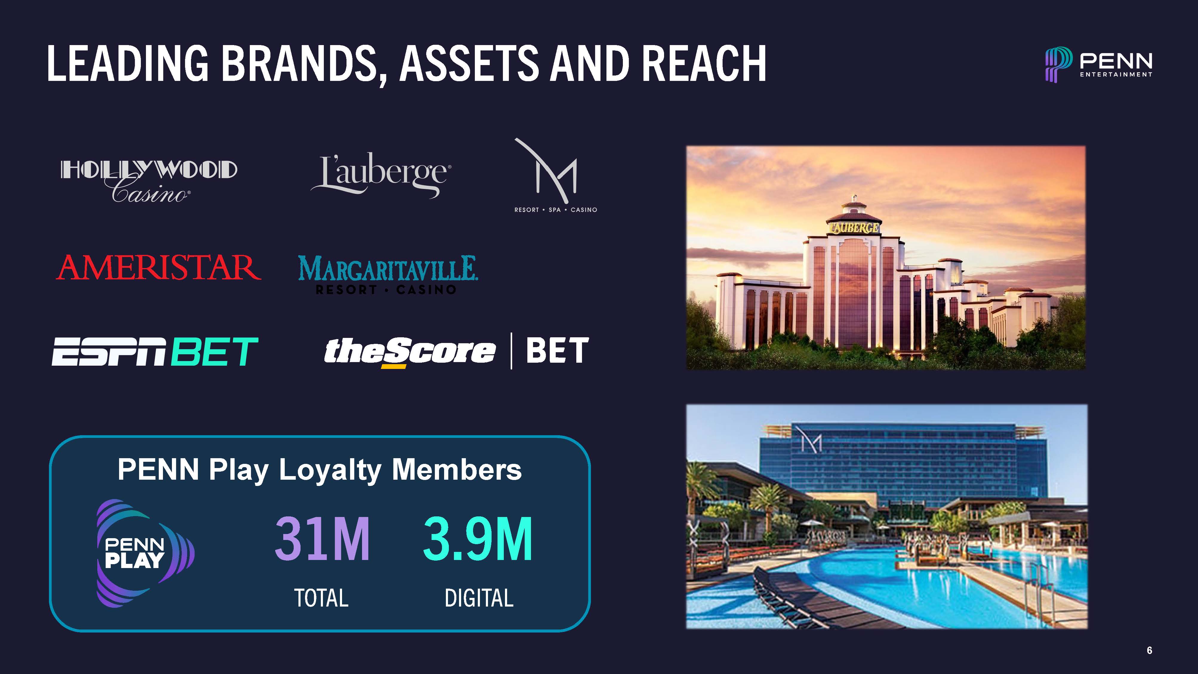 LEADING BRANDS, ASSETS AND REACH  PENN Play Loyalty Members  31M  TOTAL  3.9M  DIGITAL  6