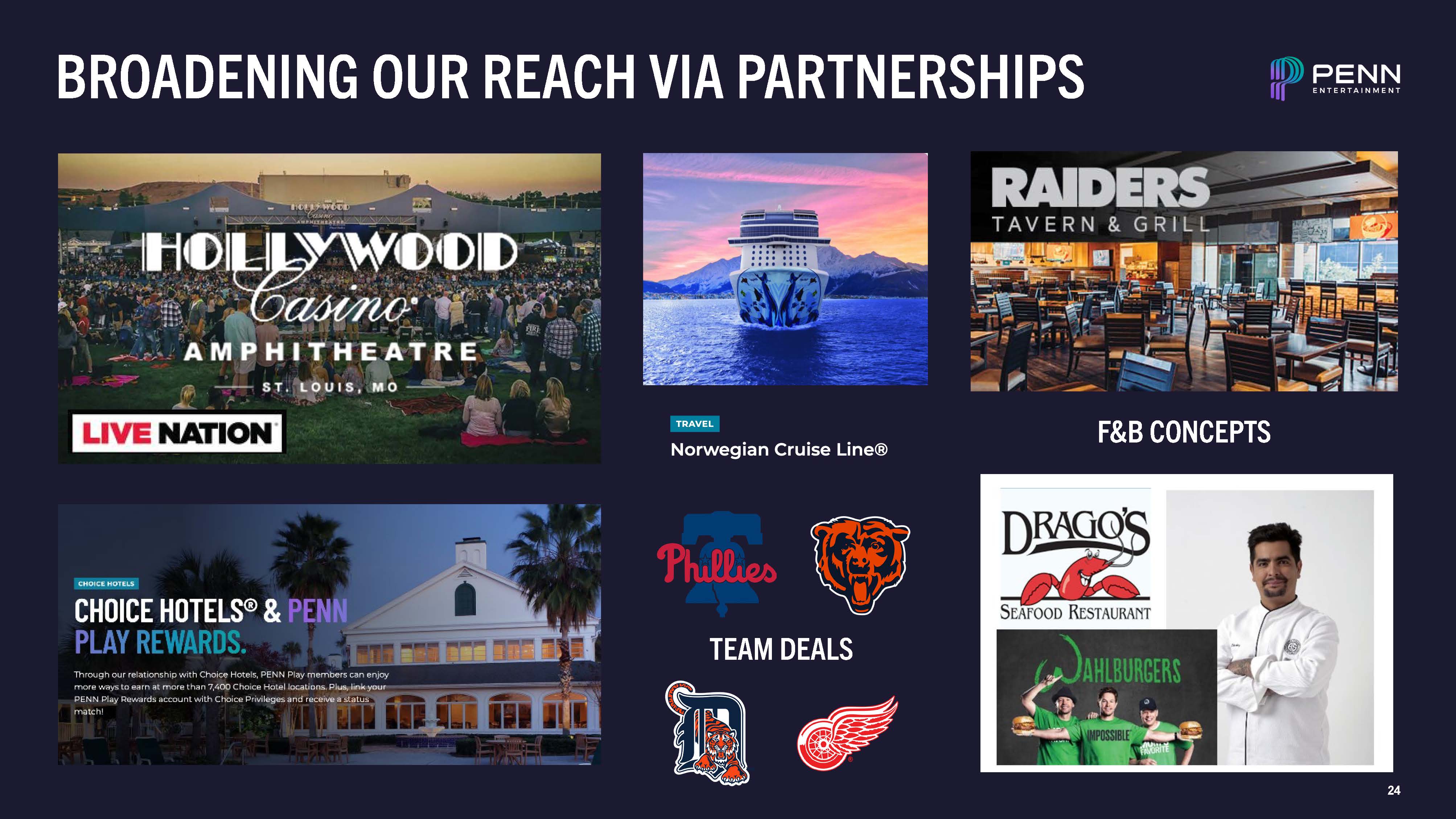 BROADENING OUR REACH VIA PARTNERSHIPS  F&B CONCEPTS  TEAM DEALS  24