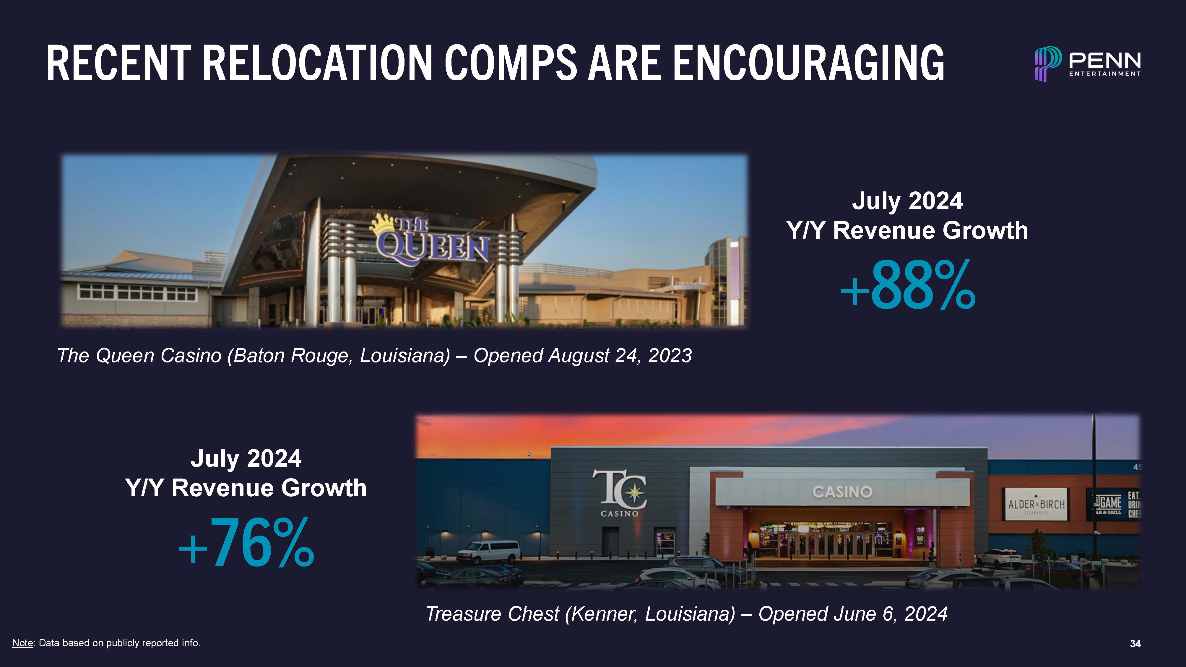 RECENT RELOCATION COMPS ARE ENCOURAGING  July 2024  Y/Y Revenue Growth  +88%  The Queen Casino (Baton Rouge, Louisiana) – Opened August 24, 2023  Note: Data based on publicly reported info.  34  July 2024  Y/Y Revenue Growth  +76%  Treasure Chest (Kenner, Louisiana) – Opened June 6, 2024
