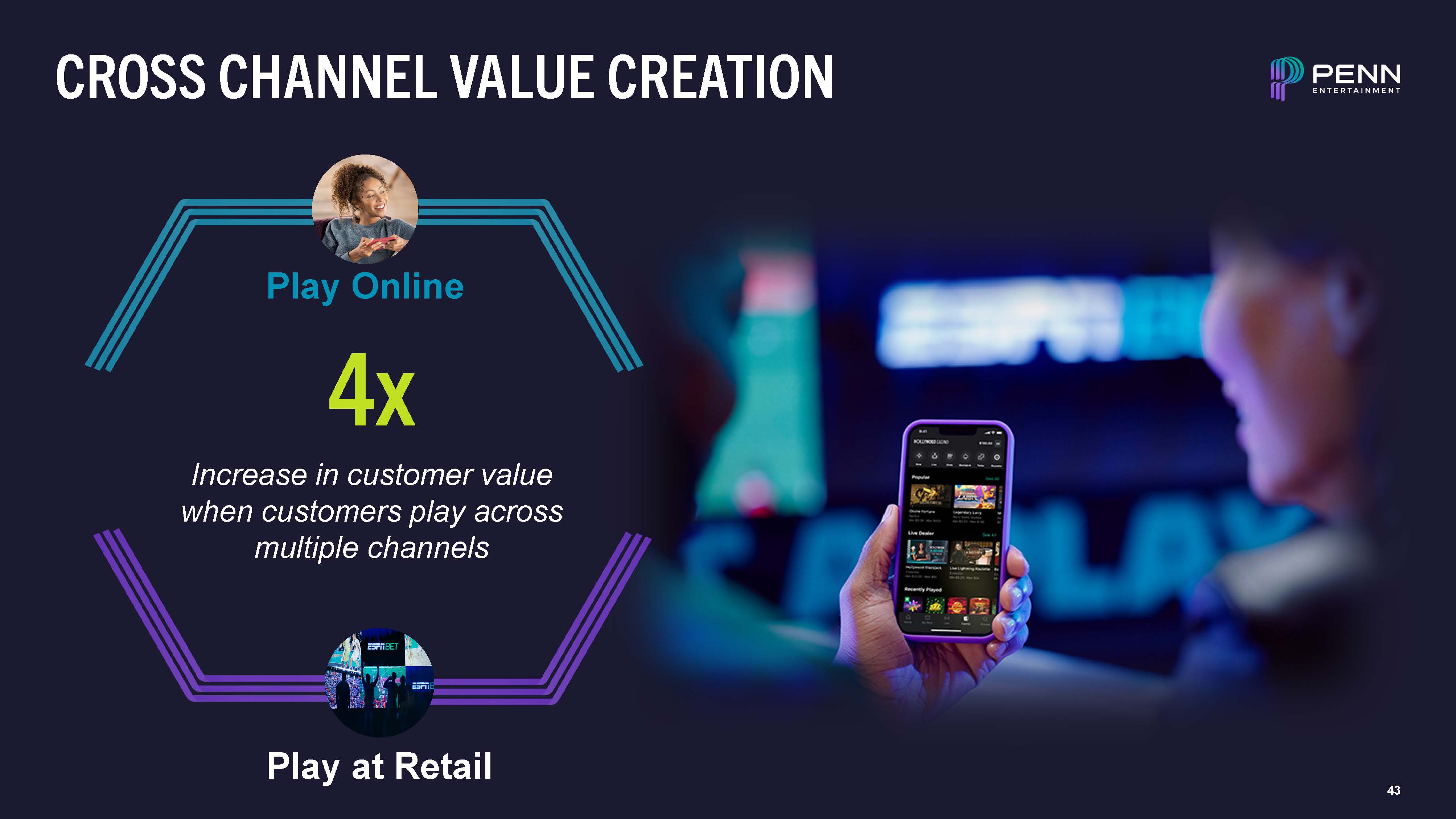CROSS CHANNEL VALUE CREATION  Play at Retail  Play Online  4x  Increase in customer value when customers play across multiple channels  43