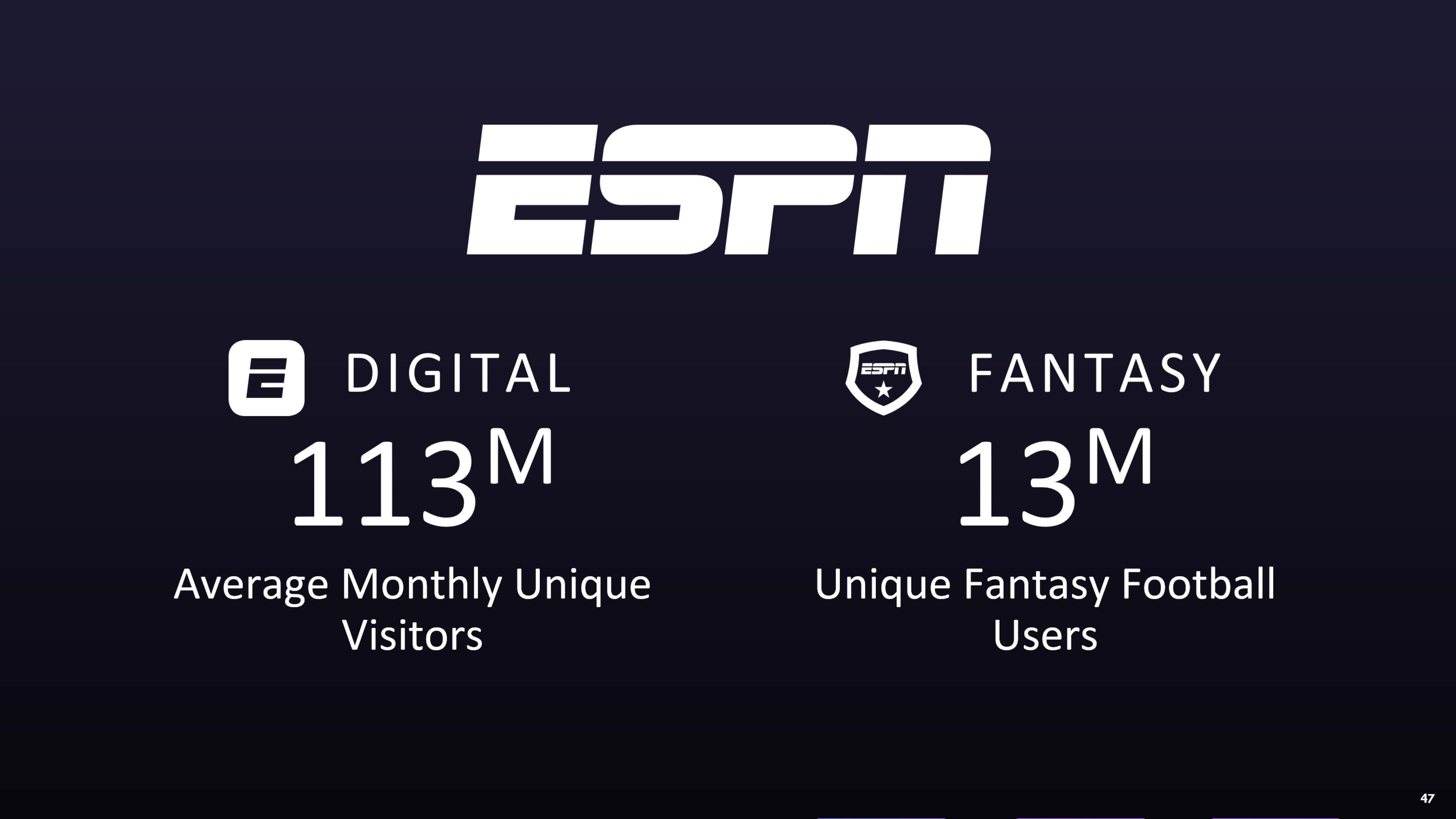 Average Monthly Unique Visitors  DIGITAL   113M  FANTASY  13M  Unique Fantasy Football Users  46