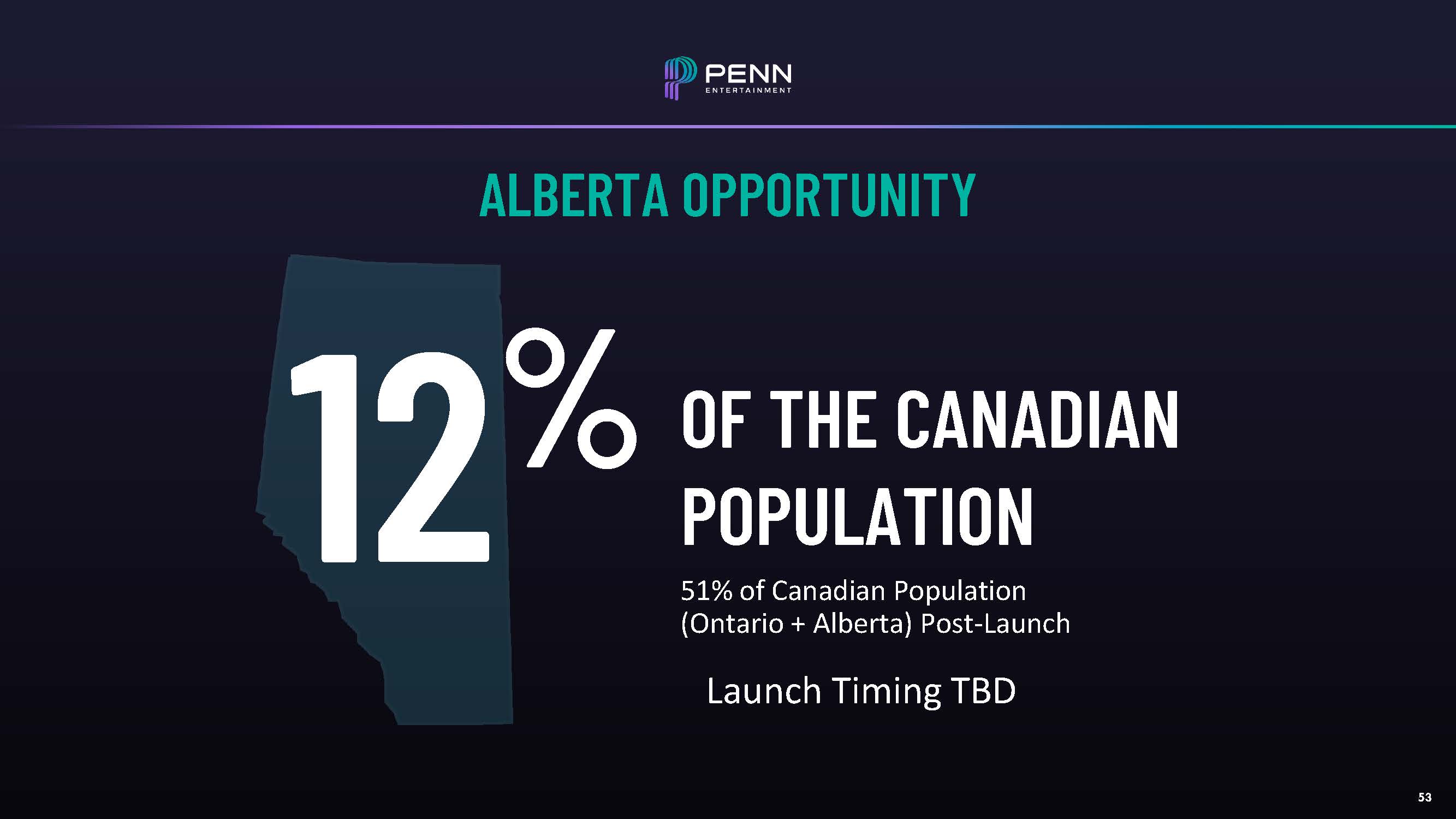 ALBERTA OPPORTUNITY  Launch Timing TBD  12  %  OF THE CANADIAN POPULATION  51% of Canadian Population (Ontario + Alberta) Post-Launch  53
