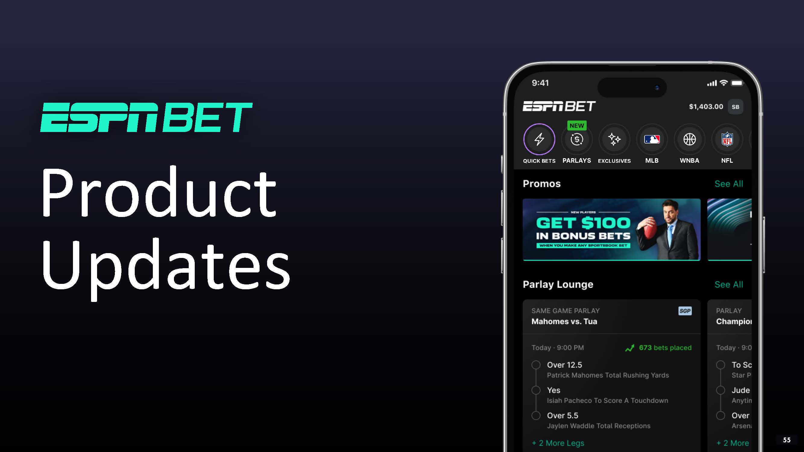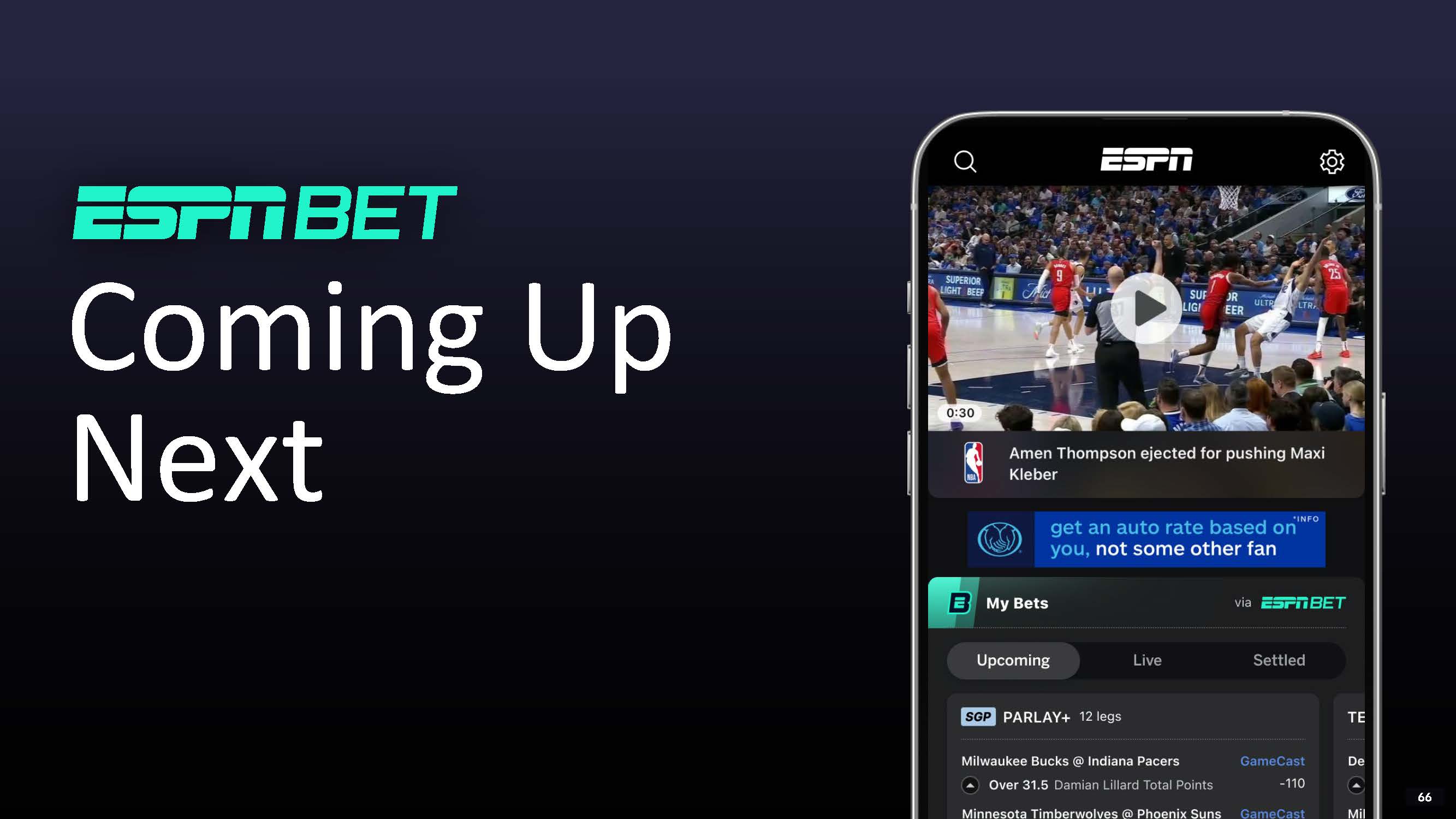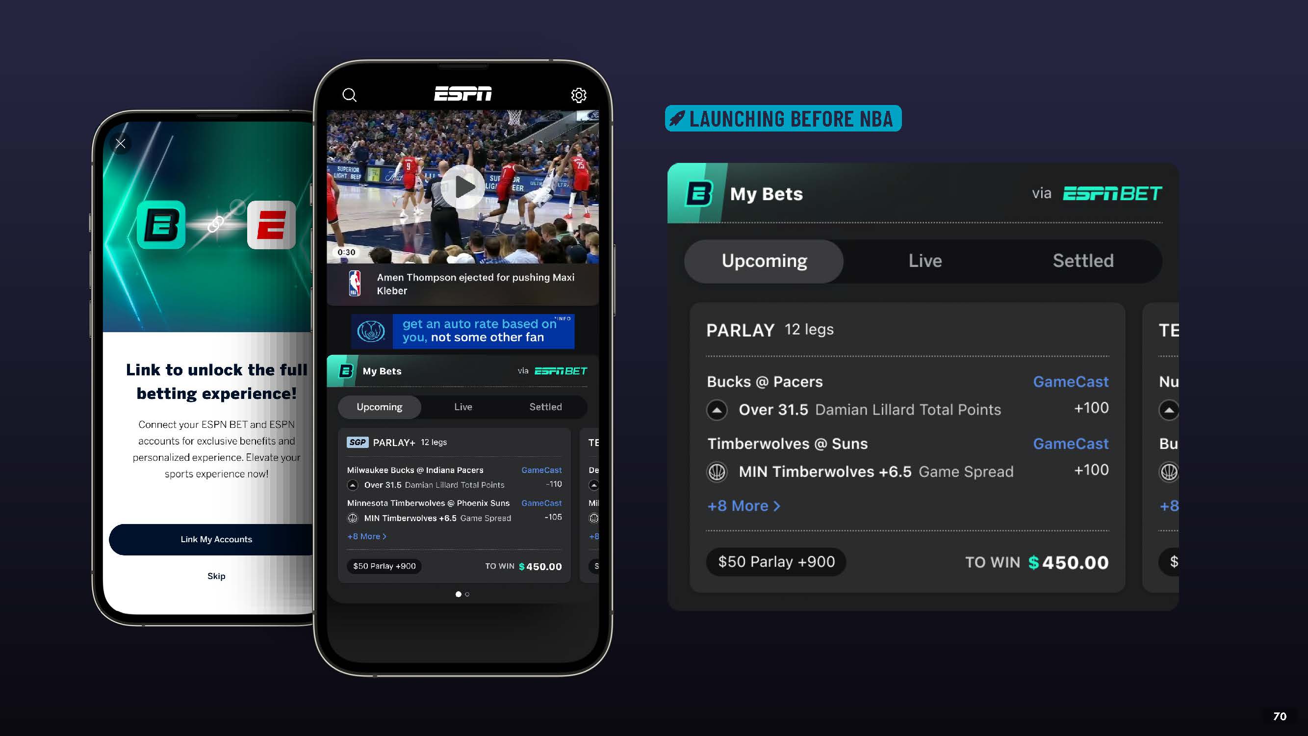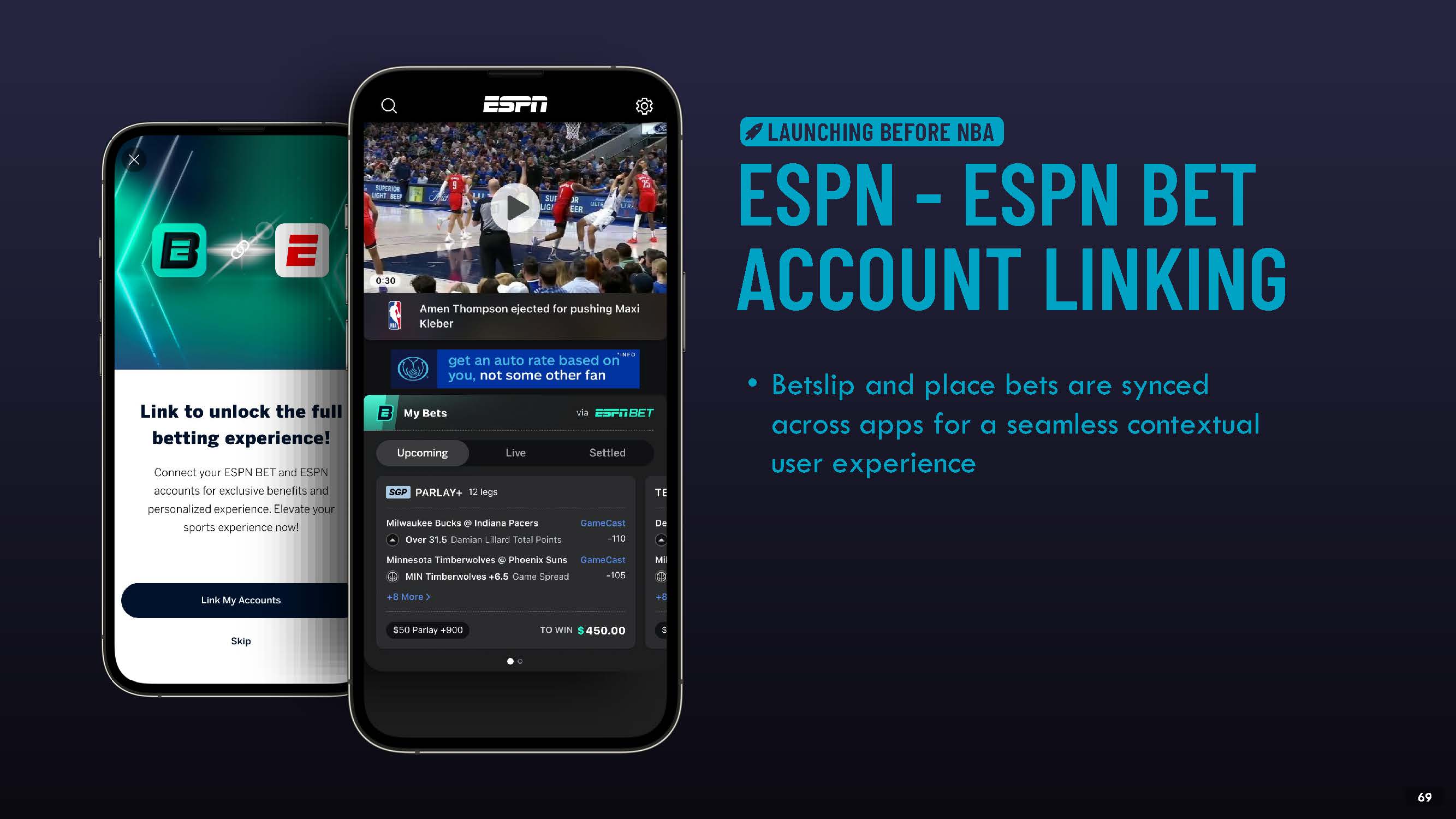 ESPN - ESPN BET ACCOUNT LINKING  Betslip and place bets are synced across apps for a seamless contextual user experience  LAUNCHING BEFORE NBA  53