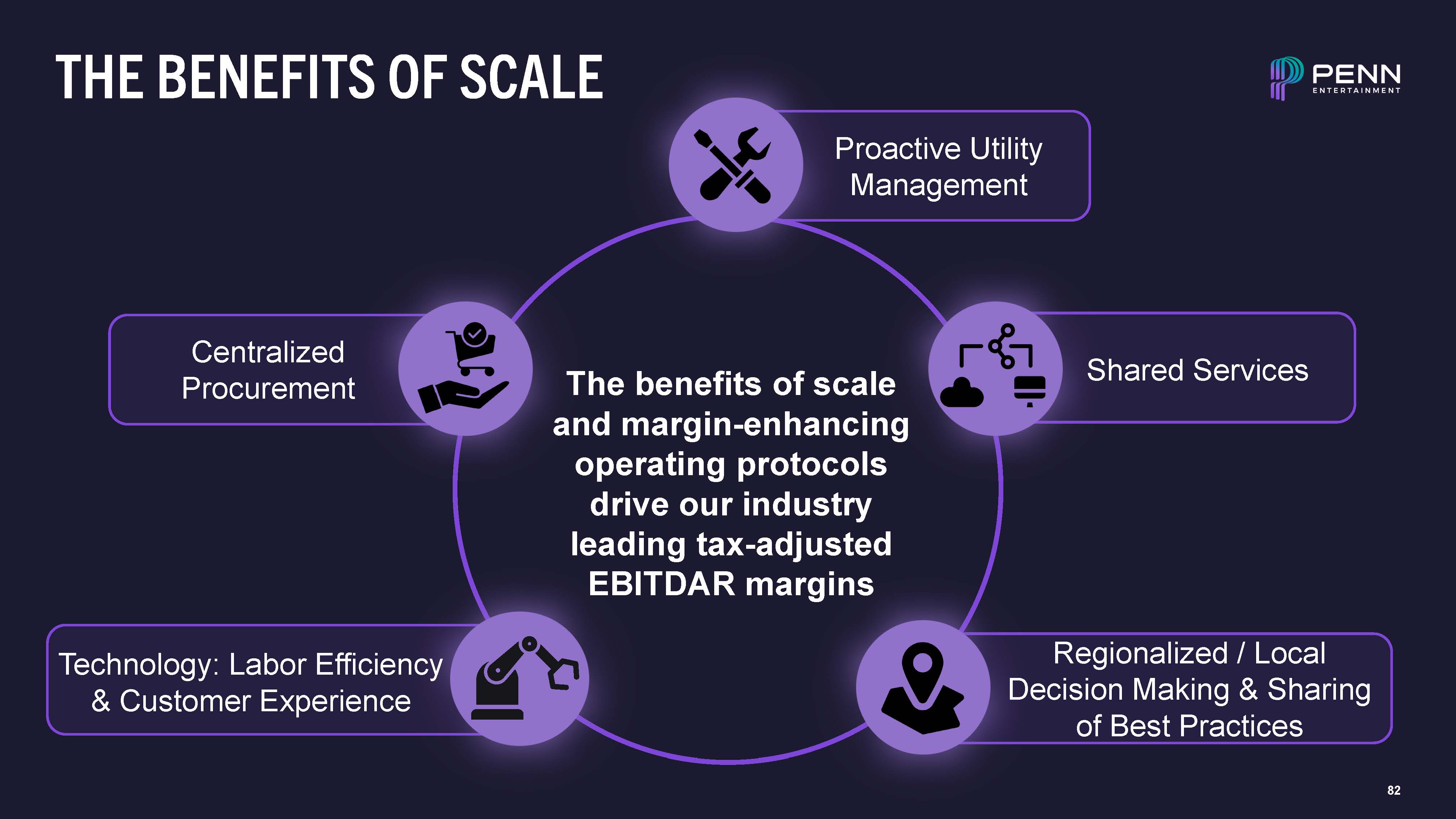 82  THE BENEFITS OF SCALE  Centralized Procurement  Proactive Utility Management  Shared Services  Regionalized / Local Decision Making & Sharing of Best Practices  Technology: Labor Efficiency & Customer Experience  The benefits of scale and margin-enhancing operating protocols drive our industry leading tax-adjusted EBITDAR margins
