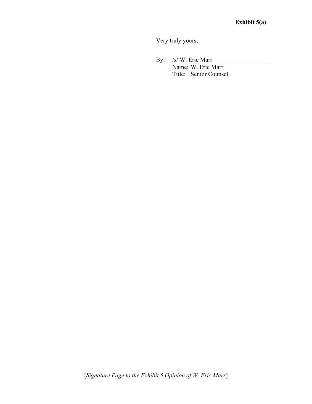 Exhibit 5(a) [Signature Page to the Exhibit 5 Opinion of W. Eric Marr] Very truly yours, By: /s/ W. Eric Marr Name: W. Eric Marr Title: Senior Counsel