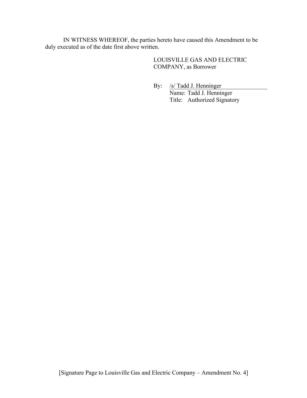 [Signature Page to Louisville Gas and Electric Company – Amendment No. 4] IN WITNESS WHEREOF, the parties hereto have caused this Amendment to be duly executed as of the date first above written. LOUISVILLE GAS AND ELECTRIC COMPANY, as Borrower By: /s/ Tadd J. Henninger Name: Tadd J. Henninger Title: Authorized Signatory