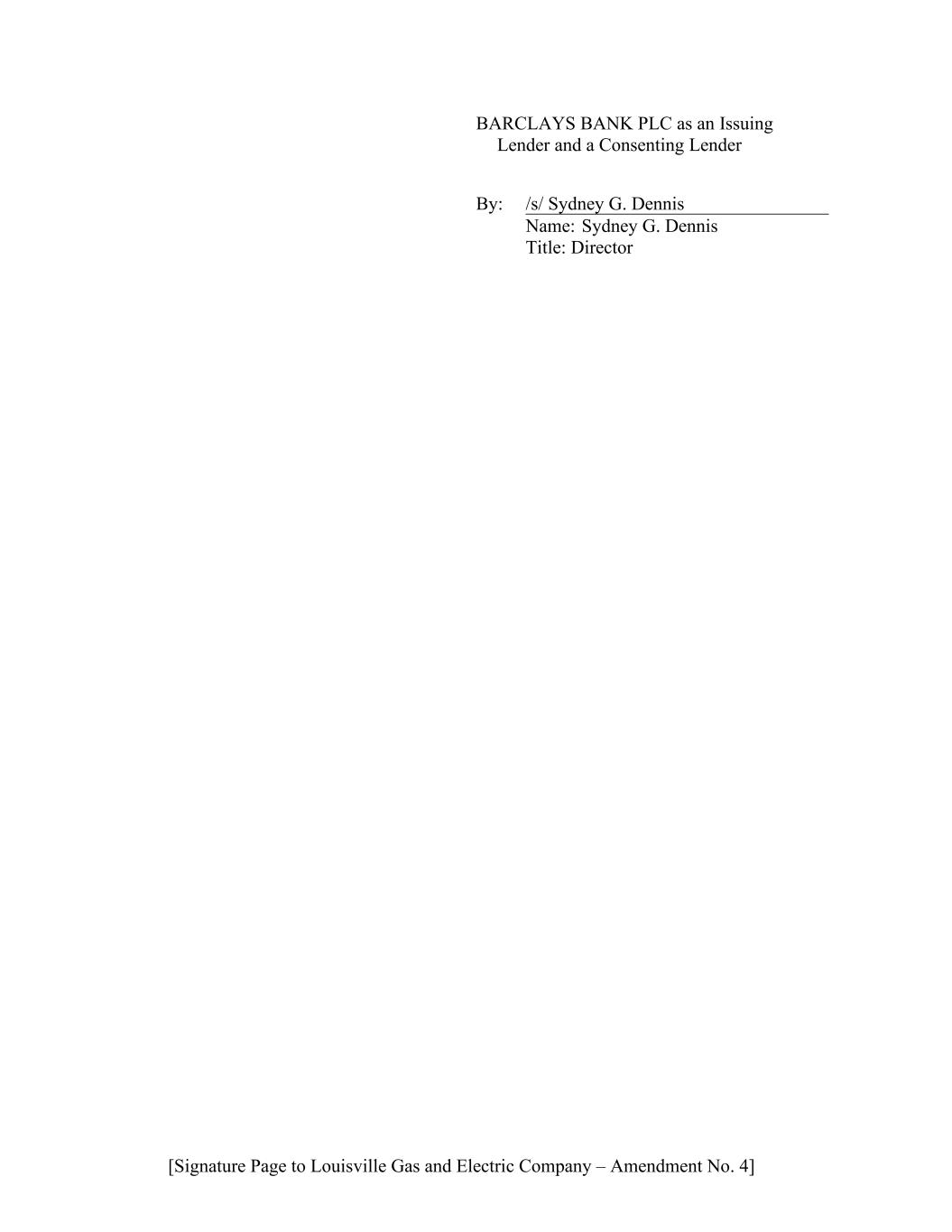 [Signature Page to Louisville Gas and Electric Company – Amendment No. 4] BARCLAYS BANK PLC as an Issuing Lender and a Consenting Lender By: /s/ Sydney G. Dennis Name: Sydney G. Dennis Title: Director