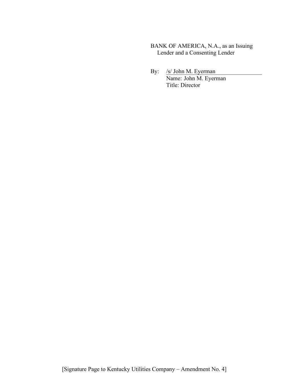 [Signature Page to Kentucky Utilities Company – Amendment No. 4] BANK OF AMERICA, N.A., as an Issuing Lender and a Consenting Lender By: /s/ John M. Eyerman Name: John M. Eyerman Title: Director