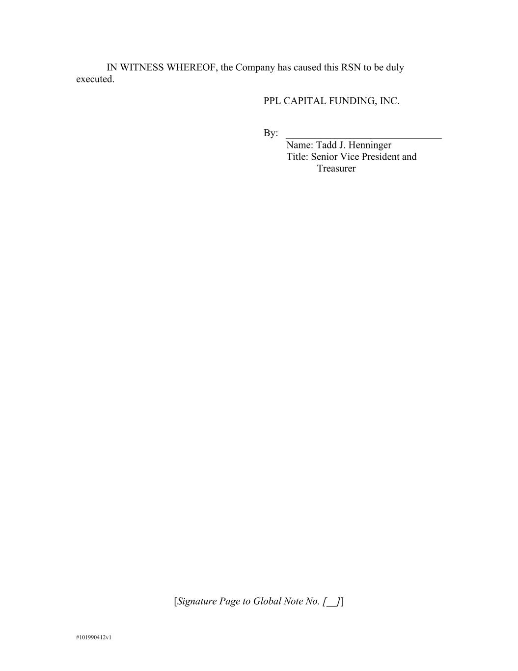 [Signature Page to Global Note No. [__]] #101990412v1 IN WITNESS WHEREOF, the Company has caused this RSN to be duly executed. PPL CAPITAL FUNDING, INC. By: Name: Tadd J. Henninger Title: Senior Vice President and Treasurer