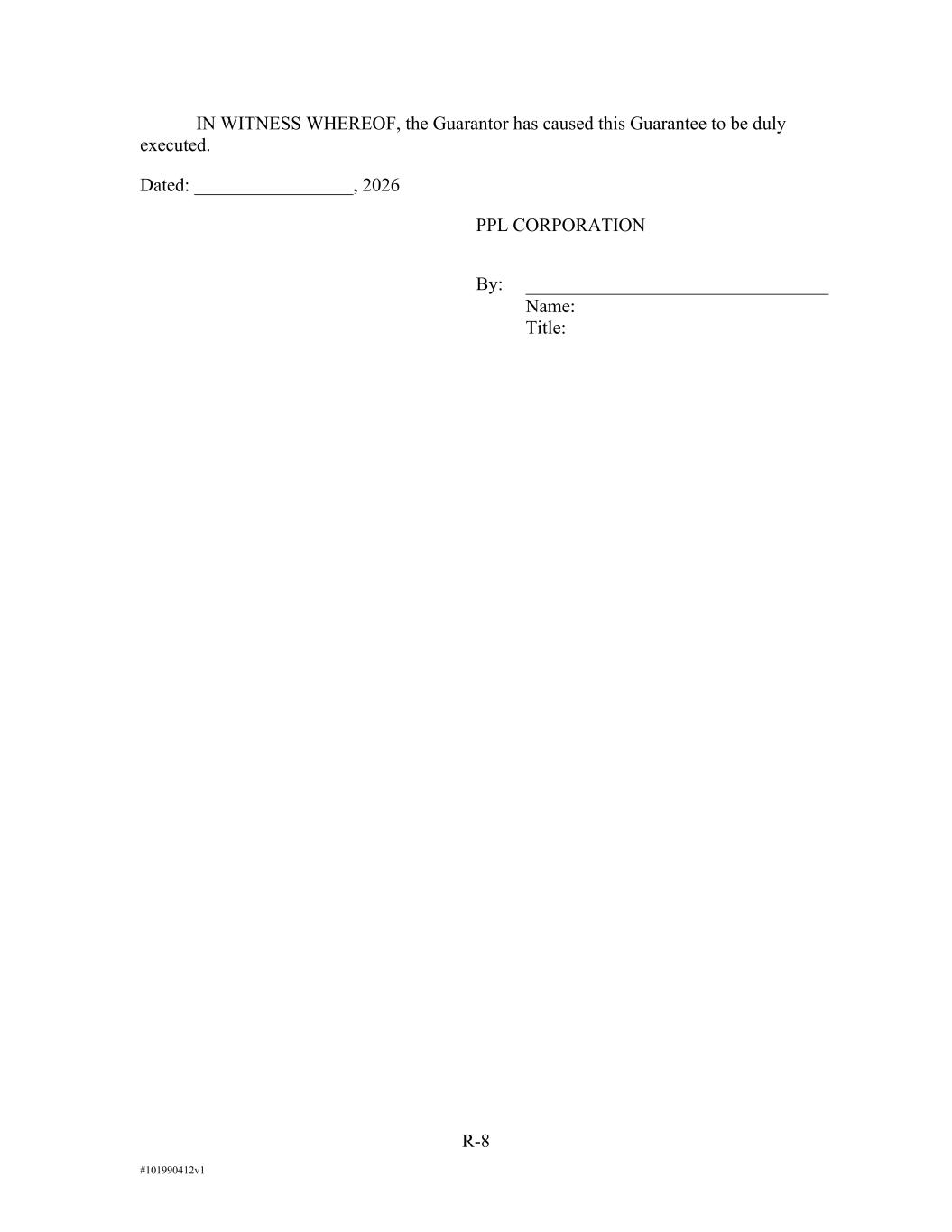 R-8 #101990412v1 IN WITNESS WHEREOF, the Guarantor has caused this Guarantee to be duly executed. Dated: _________________, 2026 PPL CORPORATION By: Name: Title: