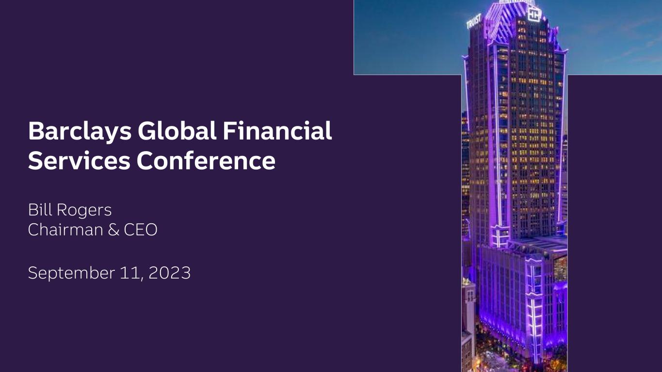 Barclays Global Financial Services Conference Bill Rogers Chairman & CEO September 11, 2023